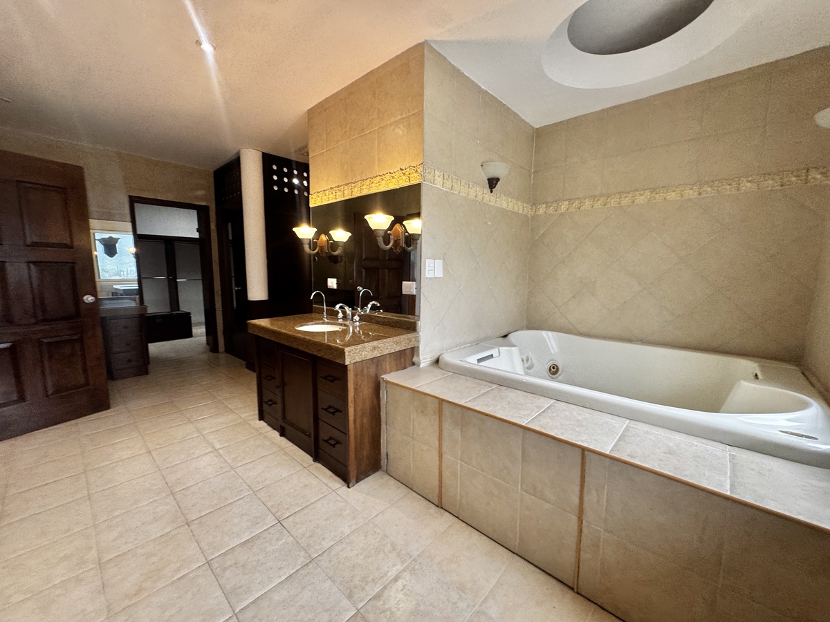 Garage for 4 cars, service room, laundry room, and 28 solar panels.Residencia con excelente ubicación en calle privada y vista espectacular a las montañas.