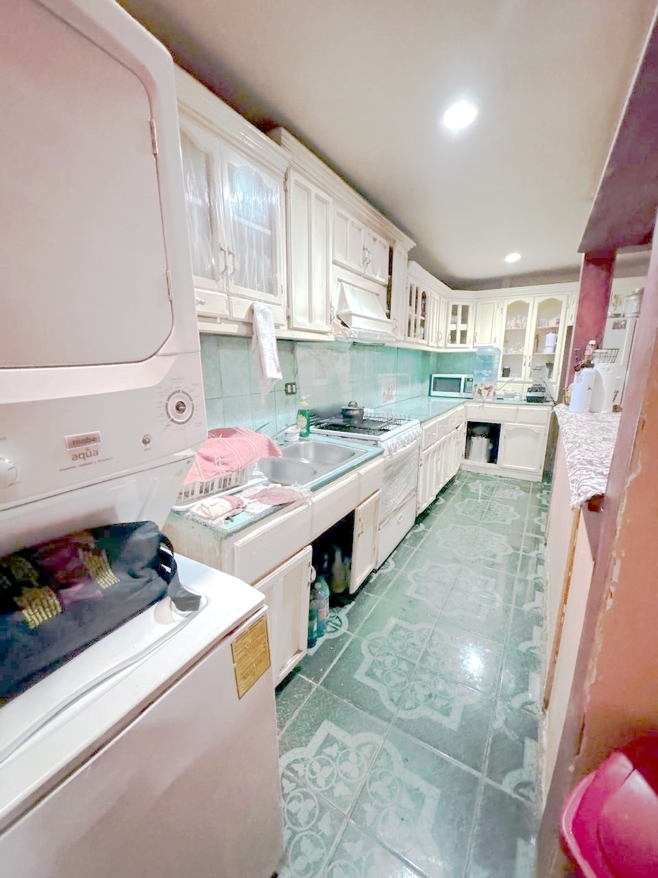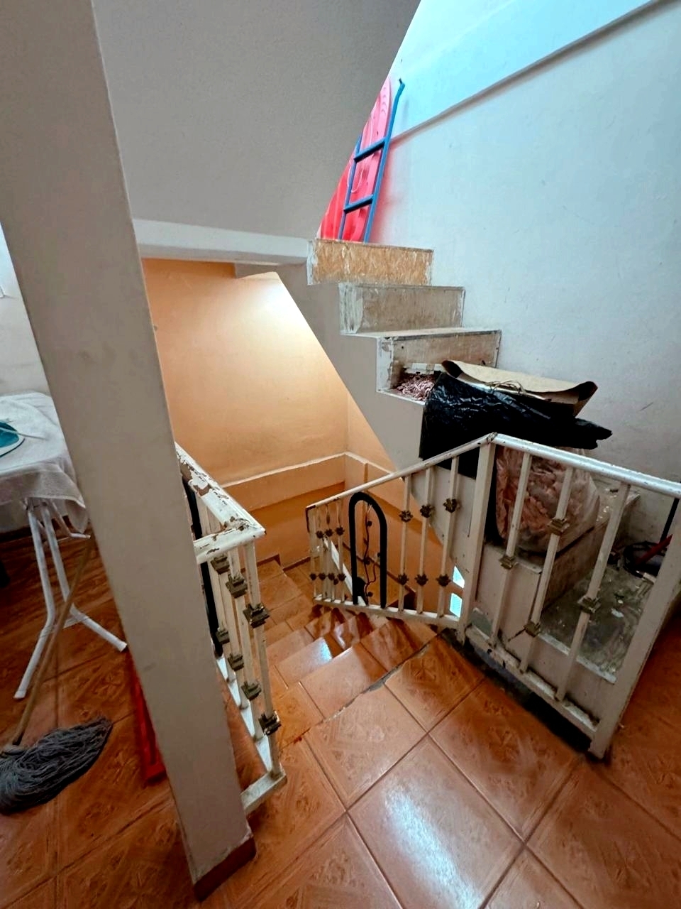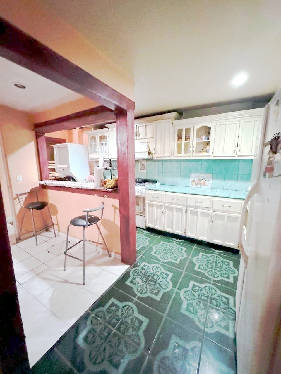 First level: commercial space with full bathroom, kitchen, space for living-dining room, parking for 2 cars.