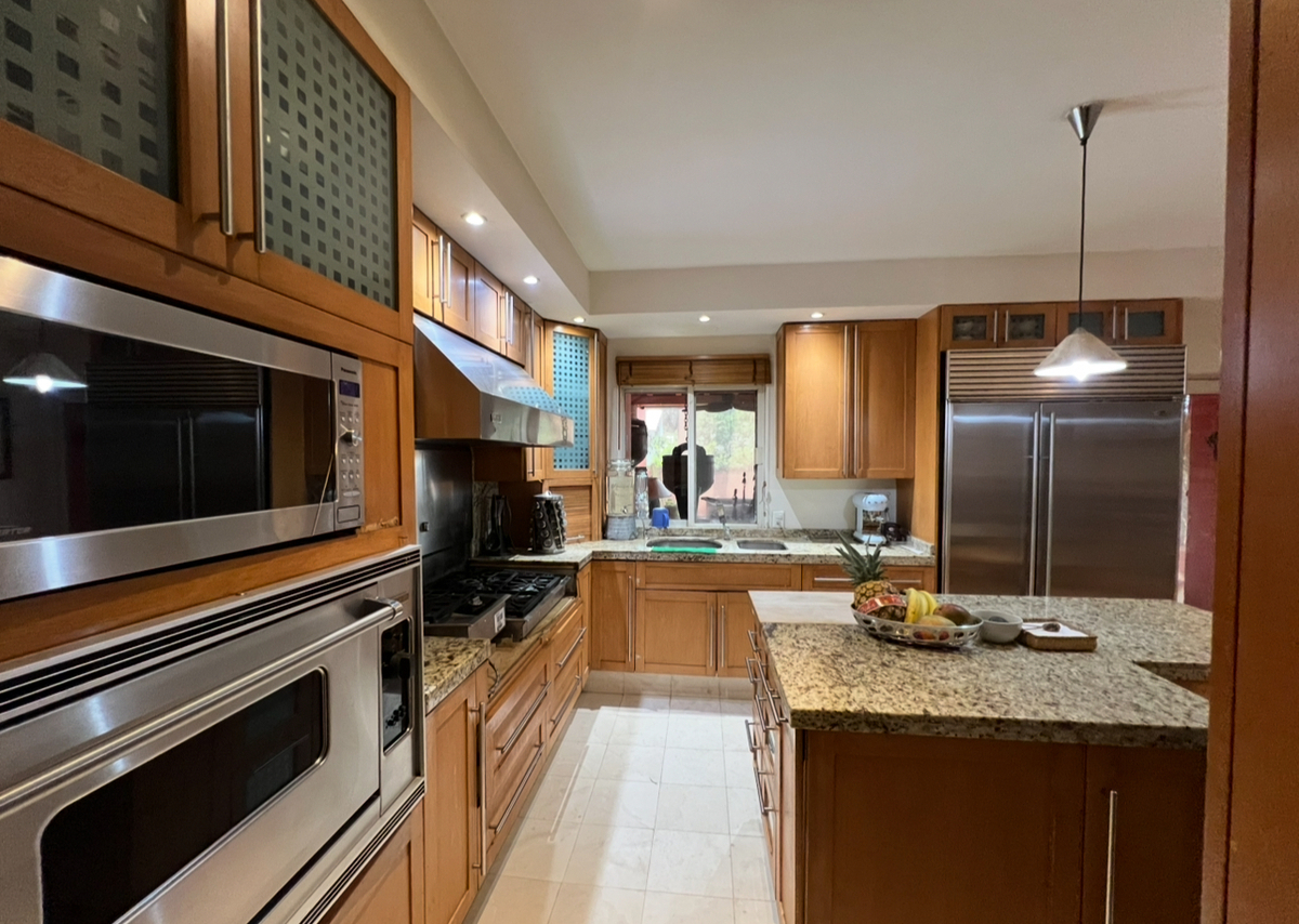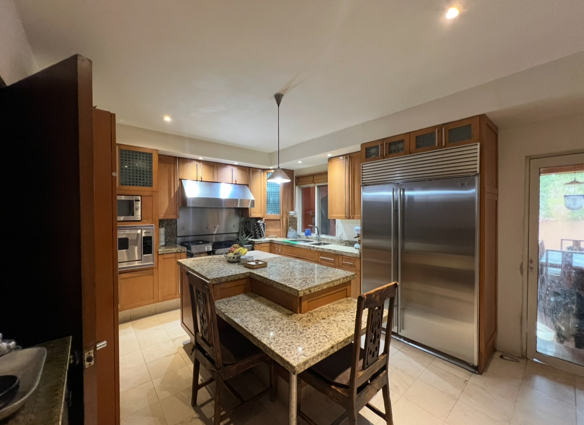 PB: Recibidor, sala, comedor amplios, terraza con jardin, medio baño de visitas, cocina integral con granito, equipada, cuarto de despensa, estudio, cochera para 4 autos, dos bodegas, cuarto de lavado.