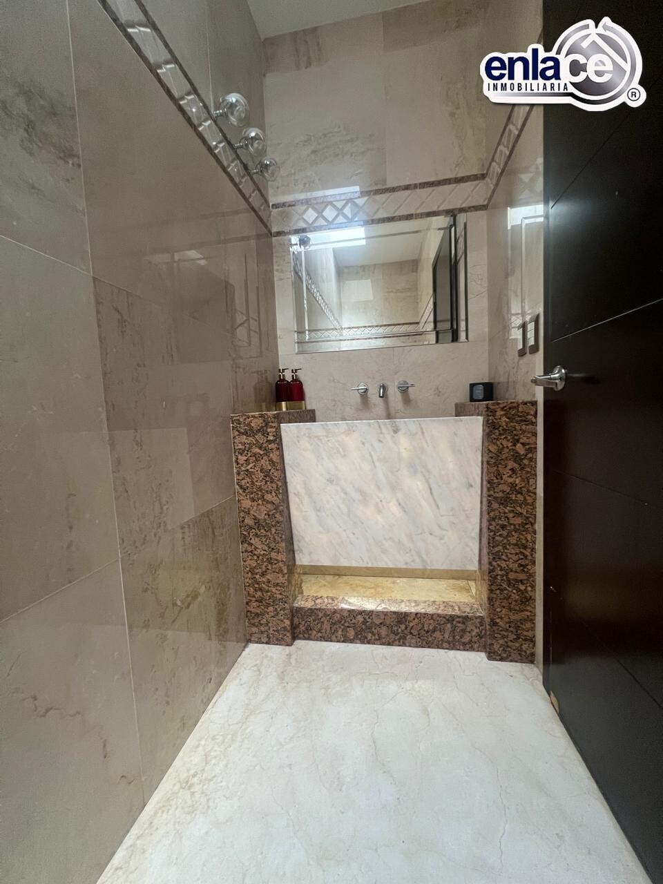 Con balcón , walking closet doble baño con jacuzzi y regadera independiente con acabados en mármol y cristal templado