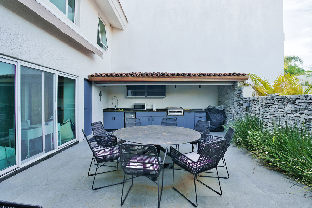 Goza de una amplia terraza con cocineta exterior equipada, perfecta para convivir y disfrutar del entorno natural.