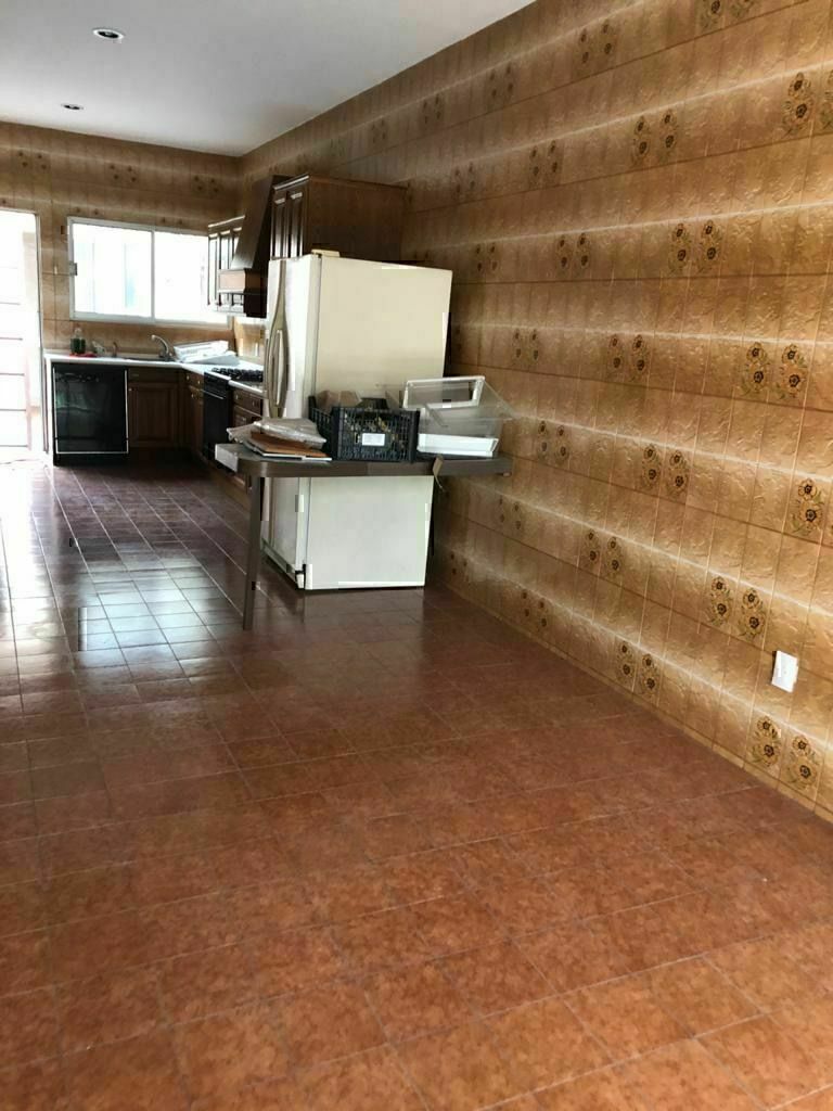 La planta de abajo tiene la sala, comedor, salida al jardín y cocina. En la parte superior, están las cinco recámaras.