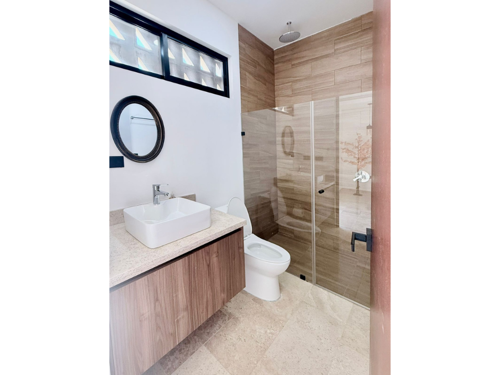 La casa cuenta con 2 recámaras y 2 baños completos en la planta alta. La recámara principal tiene un baño en habitación con lavabo doble y closets para un estilo de vida ordenado. Diseñada con una distribución inteligente, esta vivienda incorpora una barra de desayuno para comidas informales y un espacio que puede ser utilizado como estudio ideal para trabajo o lectura.