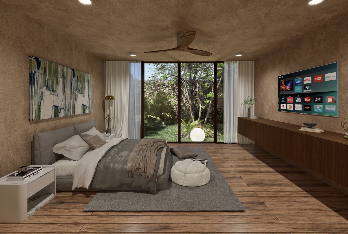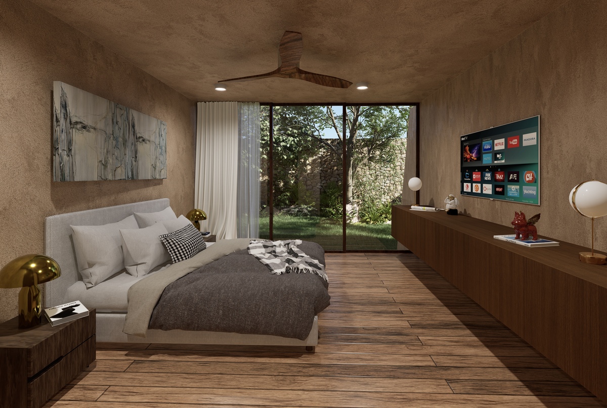 Recámara principal con clóset-vestidor y baño con acceso un patio lateral.