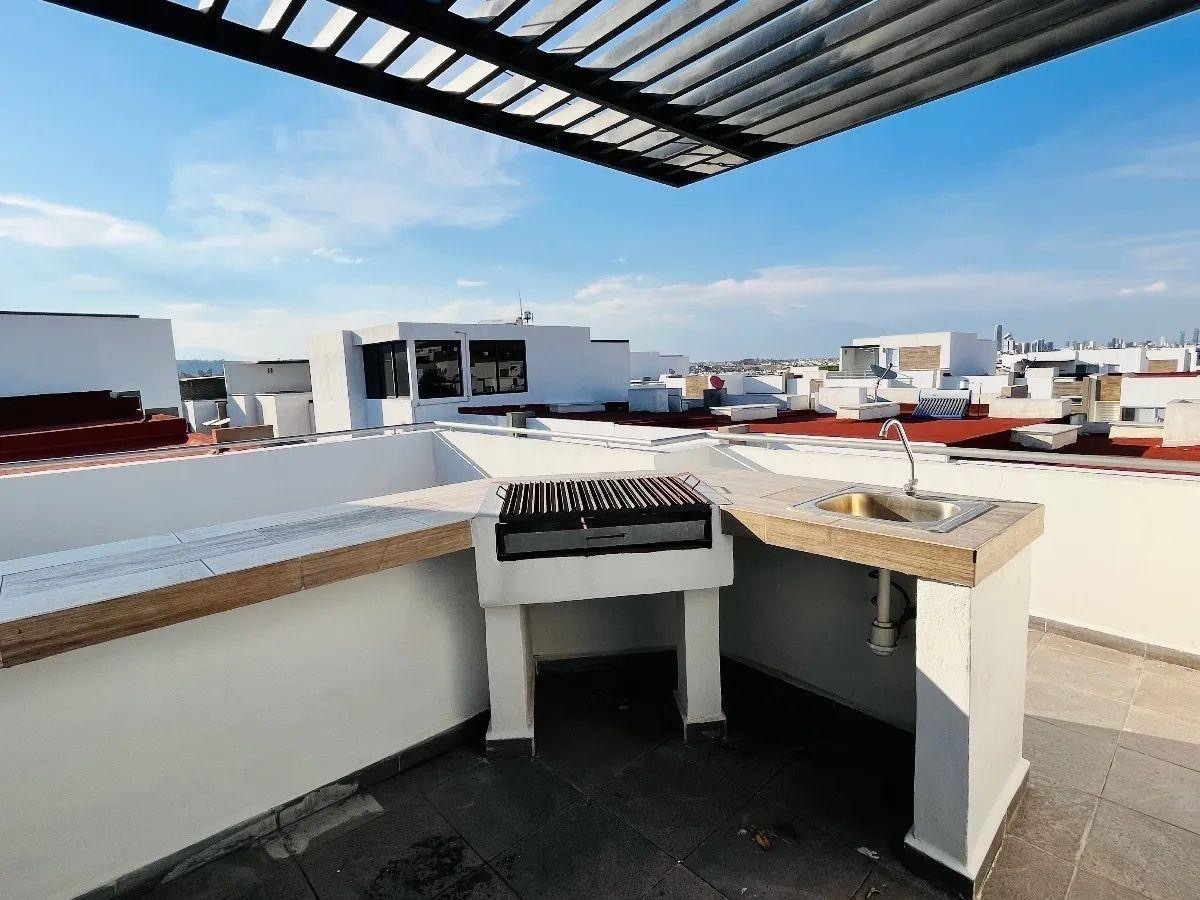 *Una terraza con pergolado, barra, asador y lavatrastes