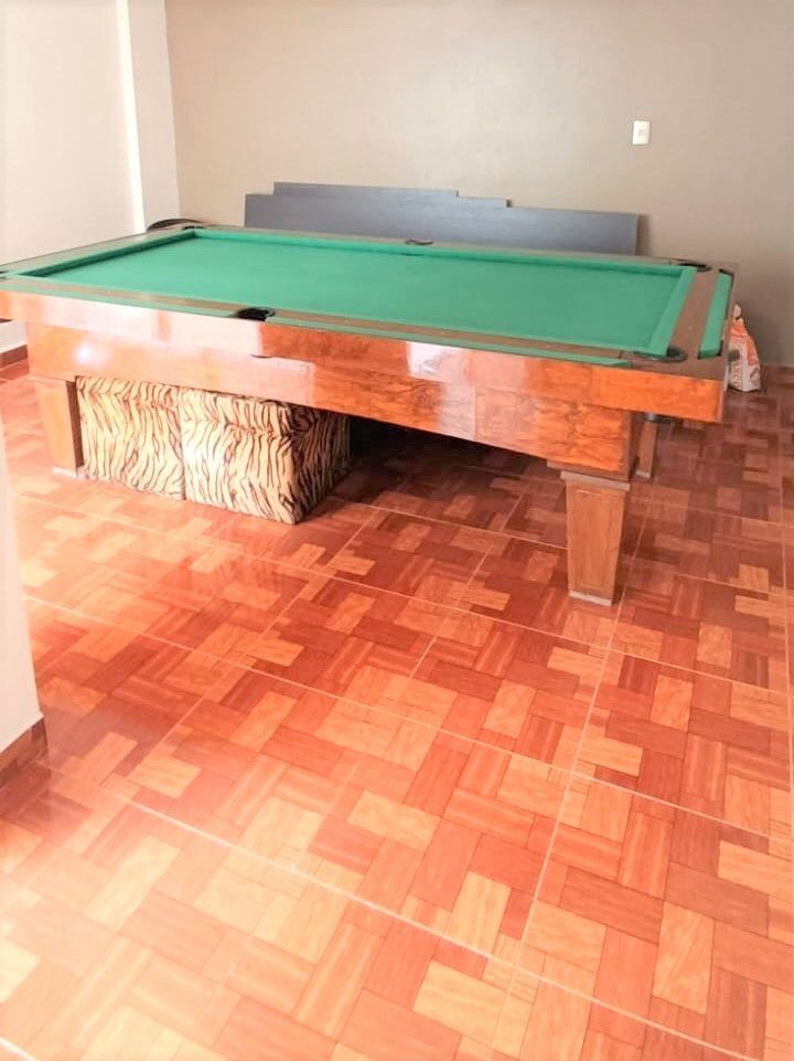 P.B. Garage para 2 autos, sala y comedor corridos muy amplios, cocina equipada con área de desayunador, alacena, salón de juegos, baño de visitas, cuarto de servicio y terraza.
