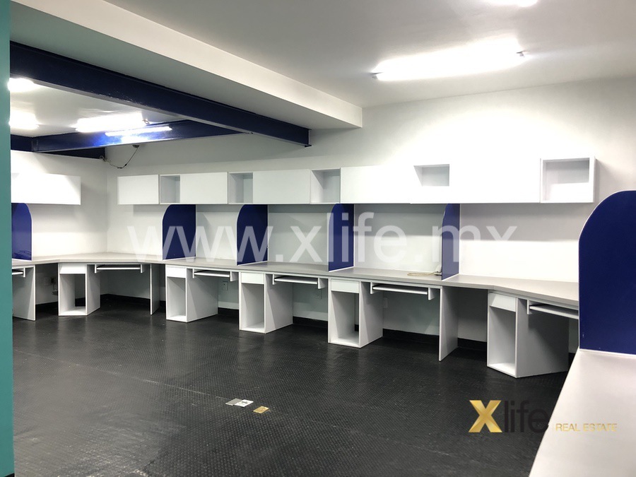 P.B. ideal para Oficinas con cubículo independiente y área de ventas con recepción y cuenta con medio Baño. Puerta peatonal controlada con acceso por tarjeta y/o código de cristal con electroimán. Apertura de la puerta por conmutador (incluido en el precio)