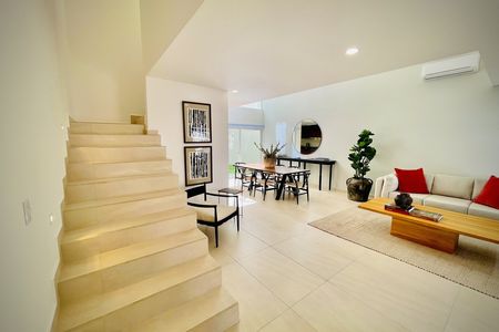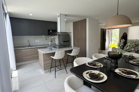 CUENTA CON SALA COMEDOR, COCINA EQUIPADA CON BARRA, MEDIO BAÑO DE VISITAS, AREA DE LAVADO, JARDIN