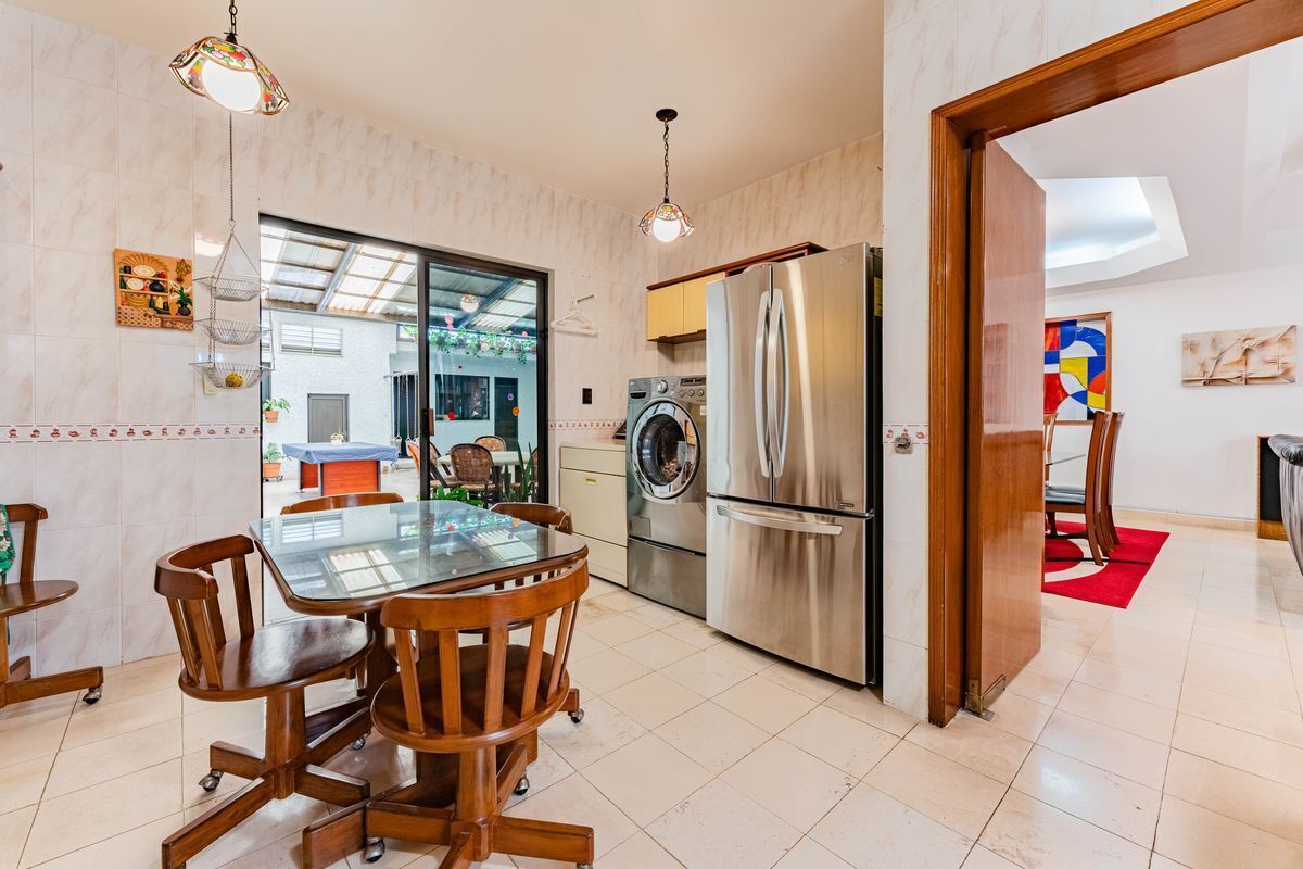 On the ground floor, it has an elegant entrance filled with natural light, a spacious and pleasant living-dining room, a half bath for guests, and a kitchen with a breakfast nook that has direct communication to the dining room and the backyard, which becomes the ideal space for gatherings with family and friends.
