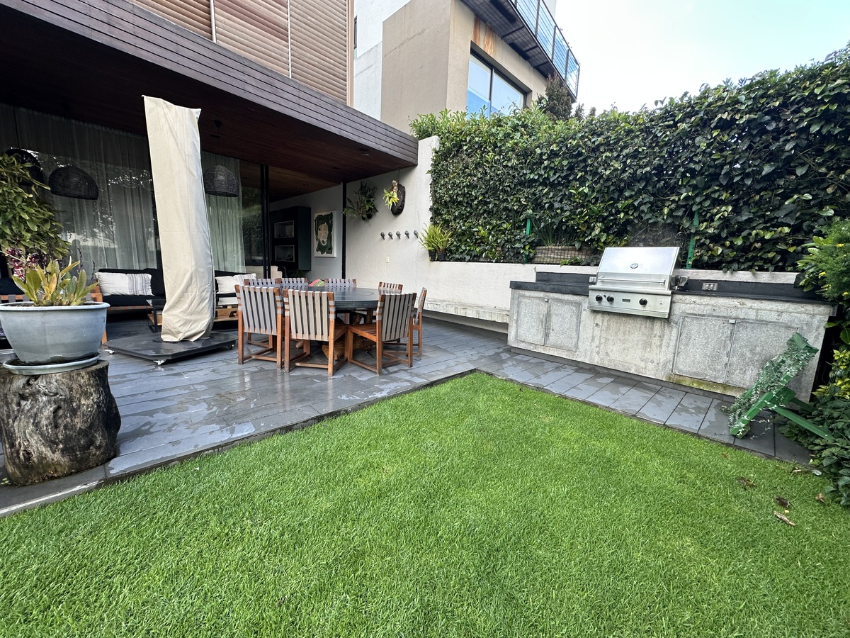 La cocina integral y el antecomedor están perfectamente integrados a las áreas sociales, con salida a una terraza de 40 m² y un jardín privado de 100 m² con vista panorámica.