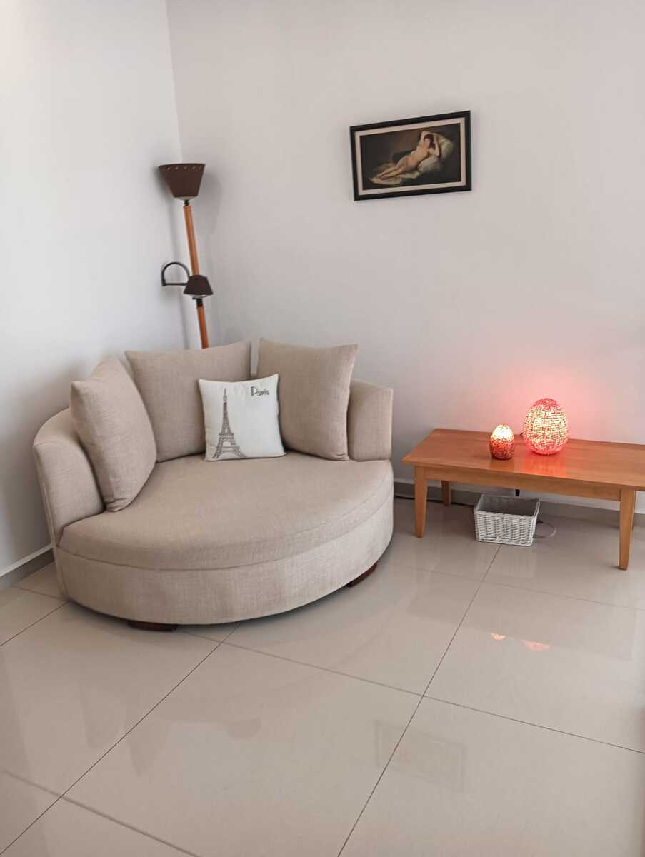 🔹Cocina equipada con cubierta y backsplash de granito, luces indirectas.