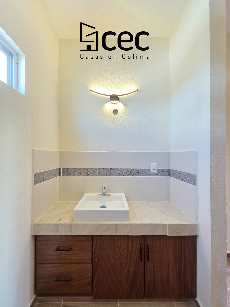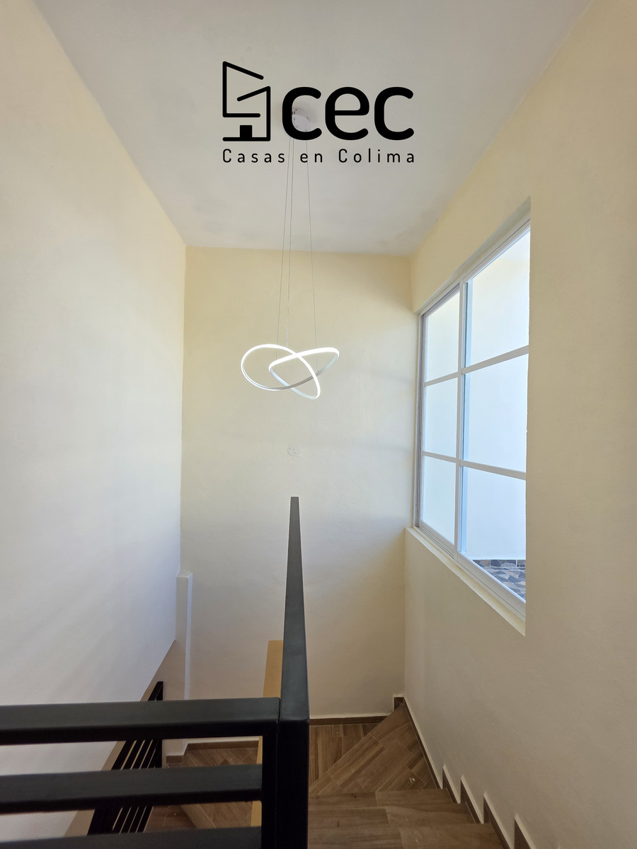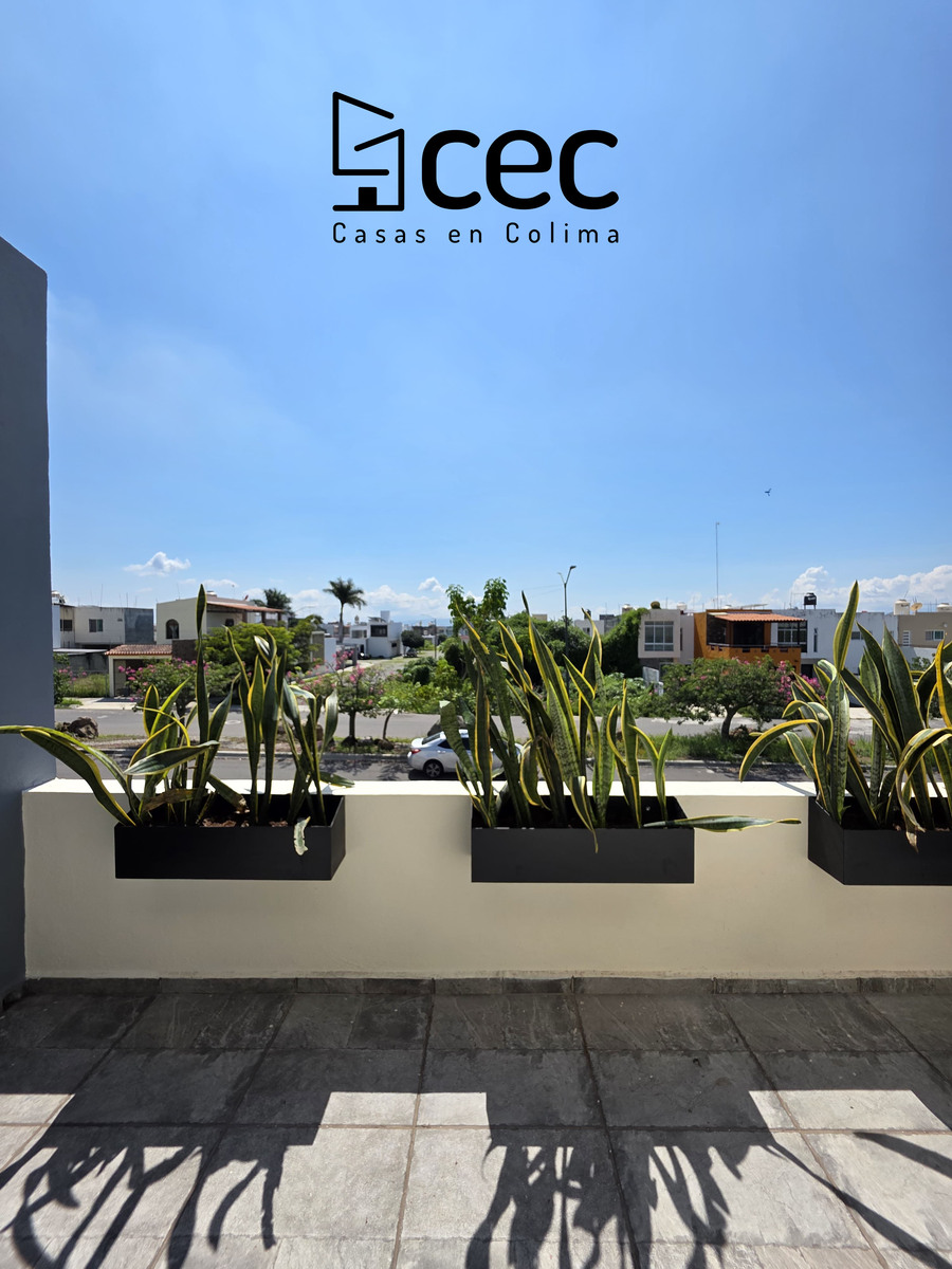Casa en venta de 2 plantas, 3 recámaras en planta alta, todas con baño y recámara principal con baño y vestidor, 3.5 baños, sala, comedor, Cocina integral con barra de granito, amplio jardín posterior, terraza y balcón al frente, modernos acabados, luminarias led, cochera para 2 autos.