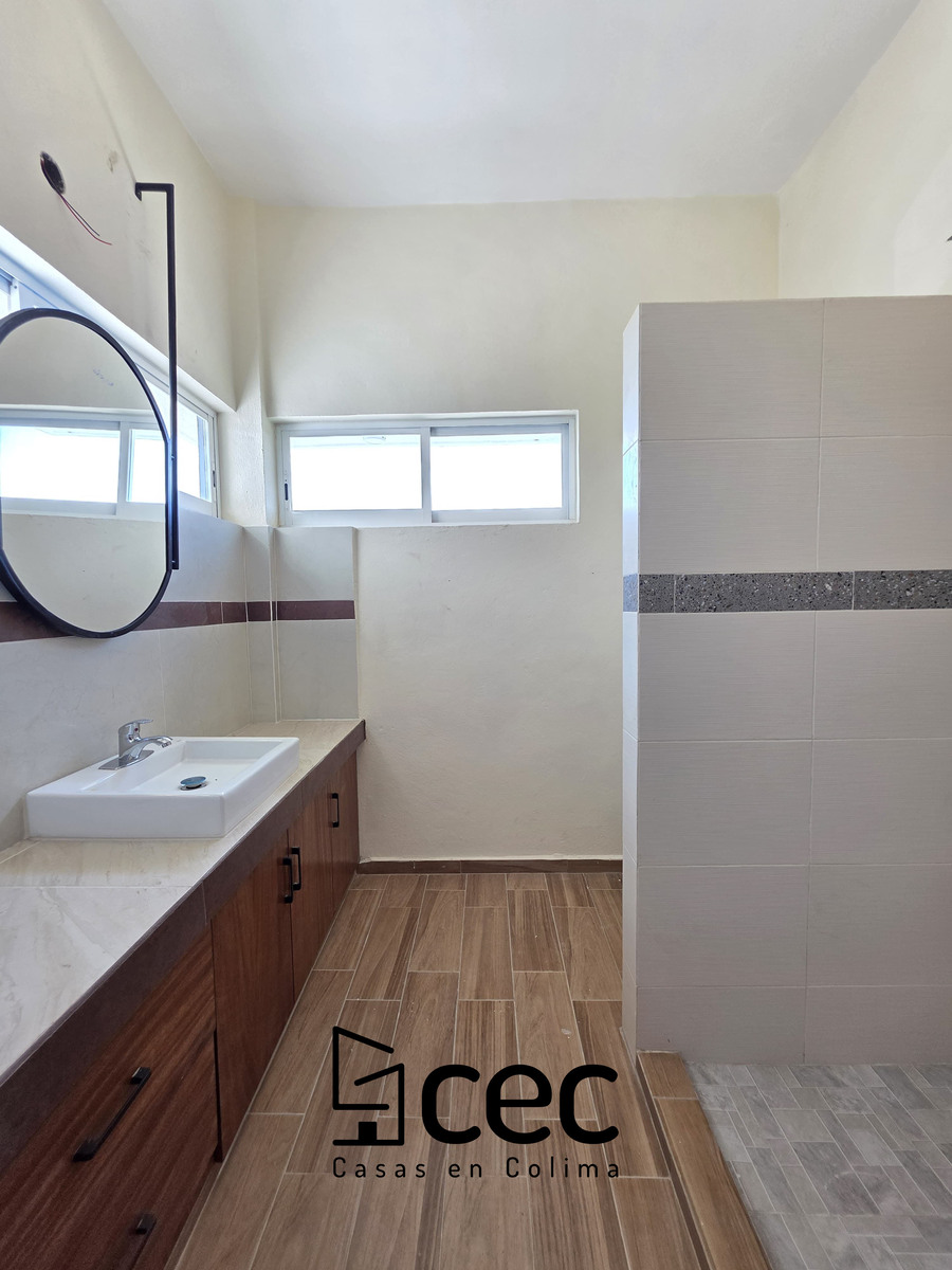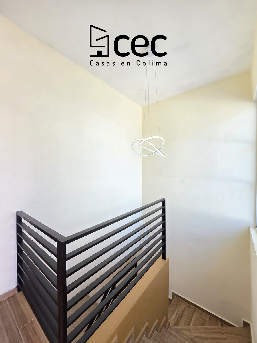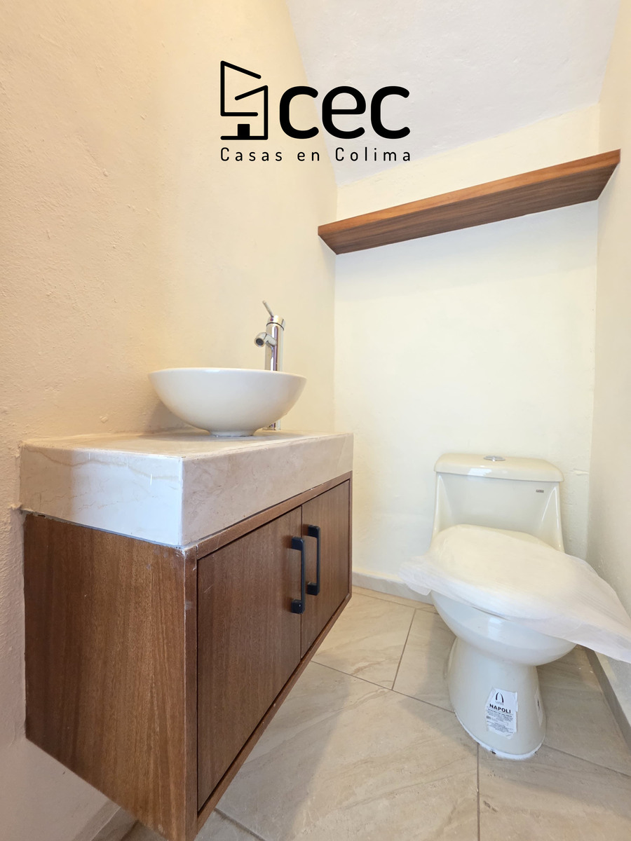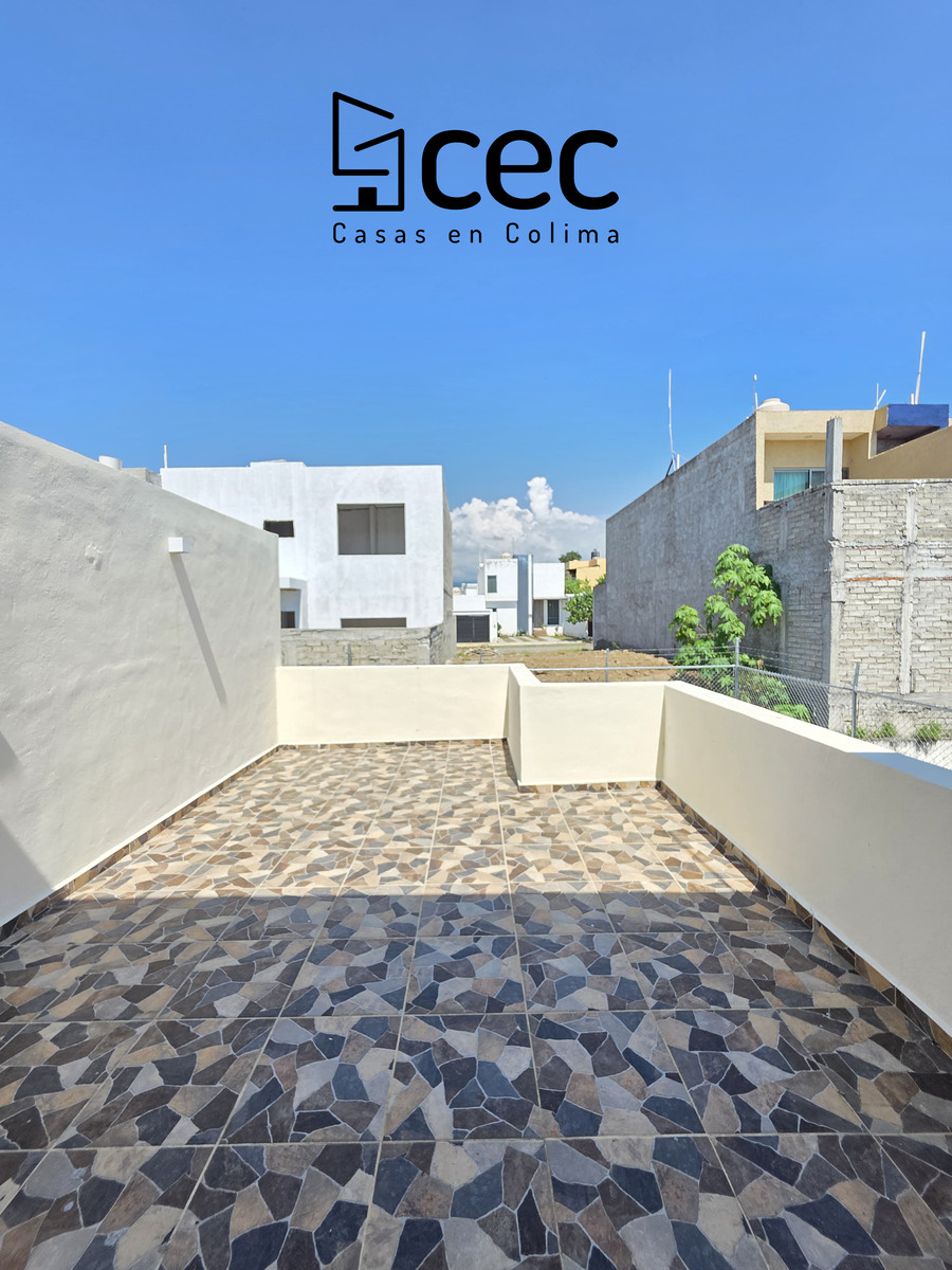 Casa en venta de 2 plantas, 3 recámaras en planta alta, todas con baño y recámara principal con baño y vestidor, 3.5 baños, sala, comedor, Cocina integral con barra de granito, amplio jardín posterior, terraza y balcón al frente, modernos acabados, luminarias led, cochera para 2 autos.