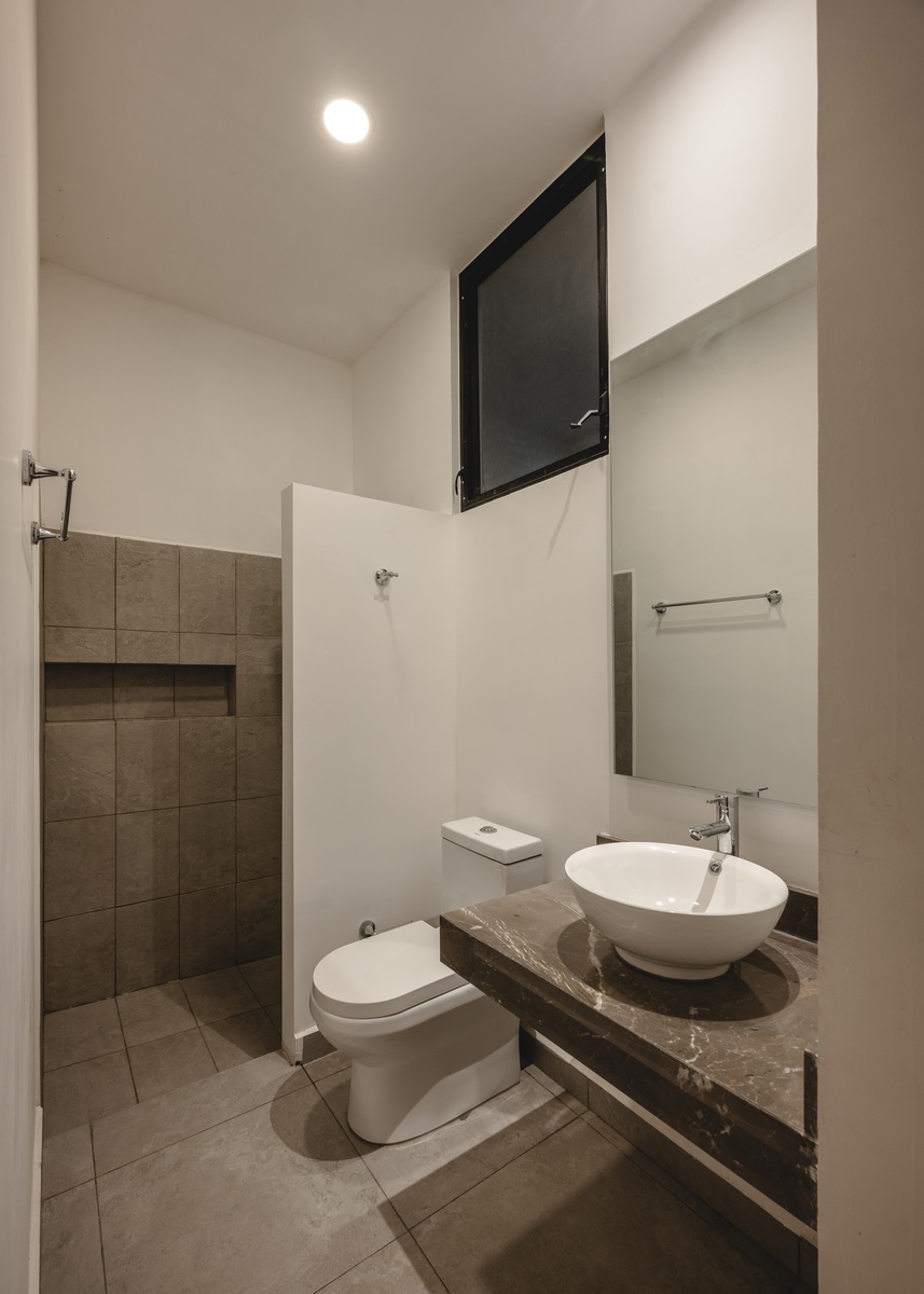. Con recubrimiento de mármol modelo Santo Tomás en baños.