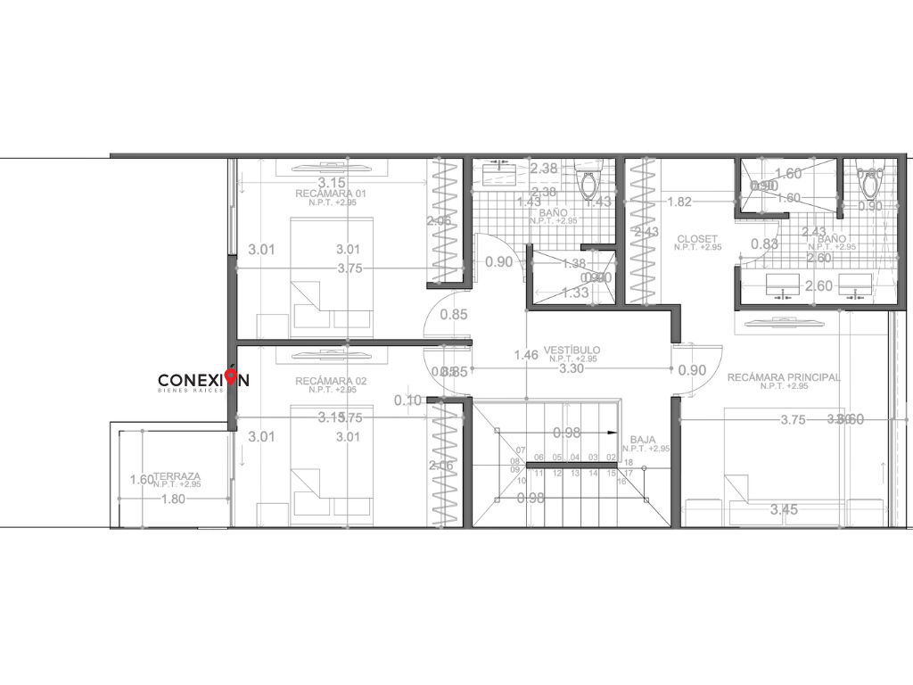 Recámara principal con baño completo y clóset vestidor.