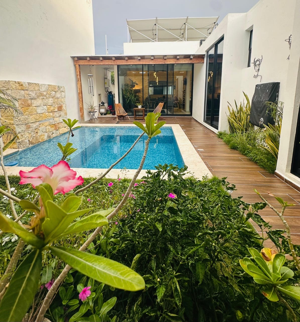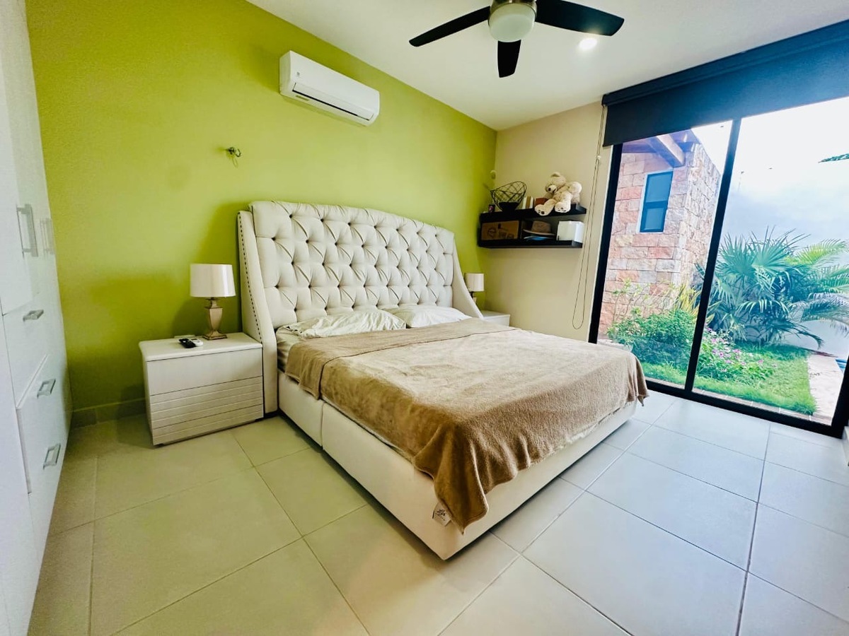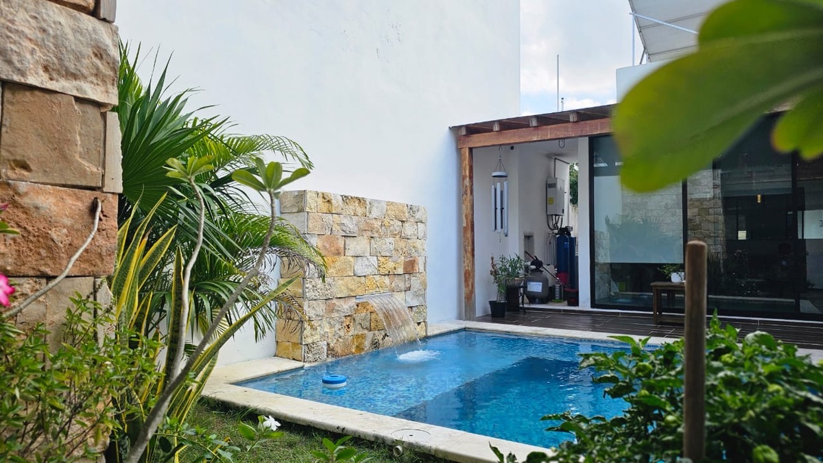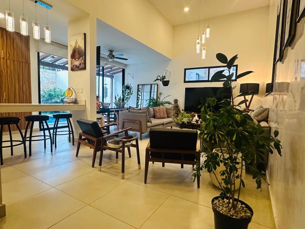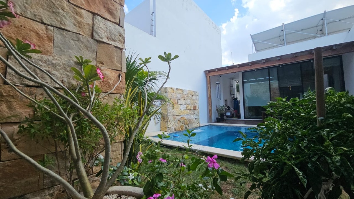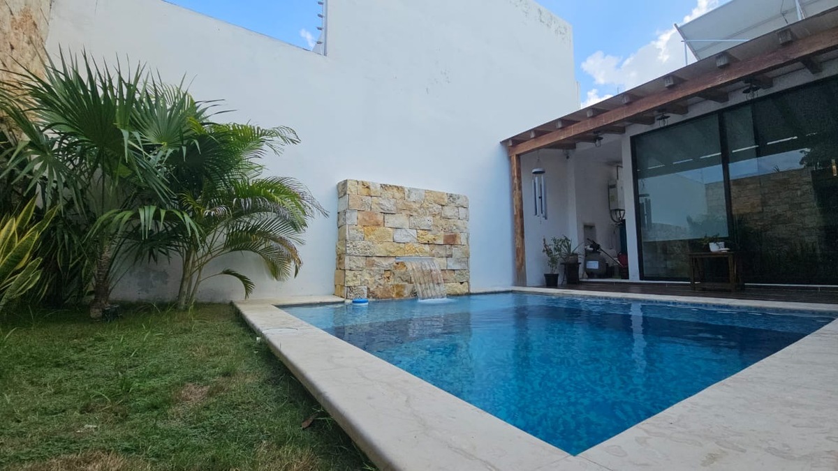 En Venta casa de una planta con 3 recámara totalmente equipada, psicina y páneles solares, lista para habitar, en Temozón, Norte.