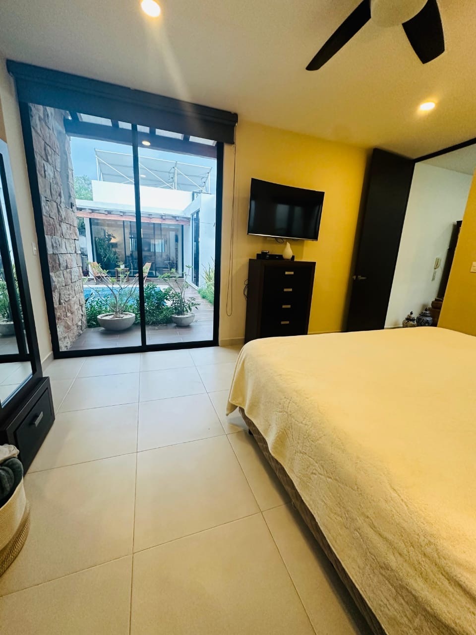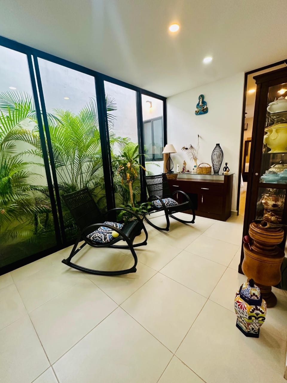 - Ventanal con vista al jardín y la pisicna