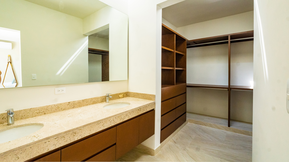 -Recámara principal con clóset vestidor, baño completo, lavado doble y balcón.