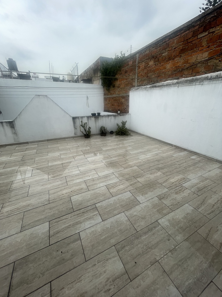 Cocina integral, Sala, comedor, Estudio ( puede ser recámara) Dos recámaras, dos baños, áreas de lavado y amplio Roof