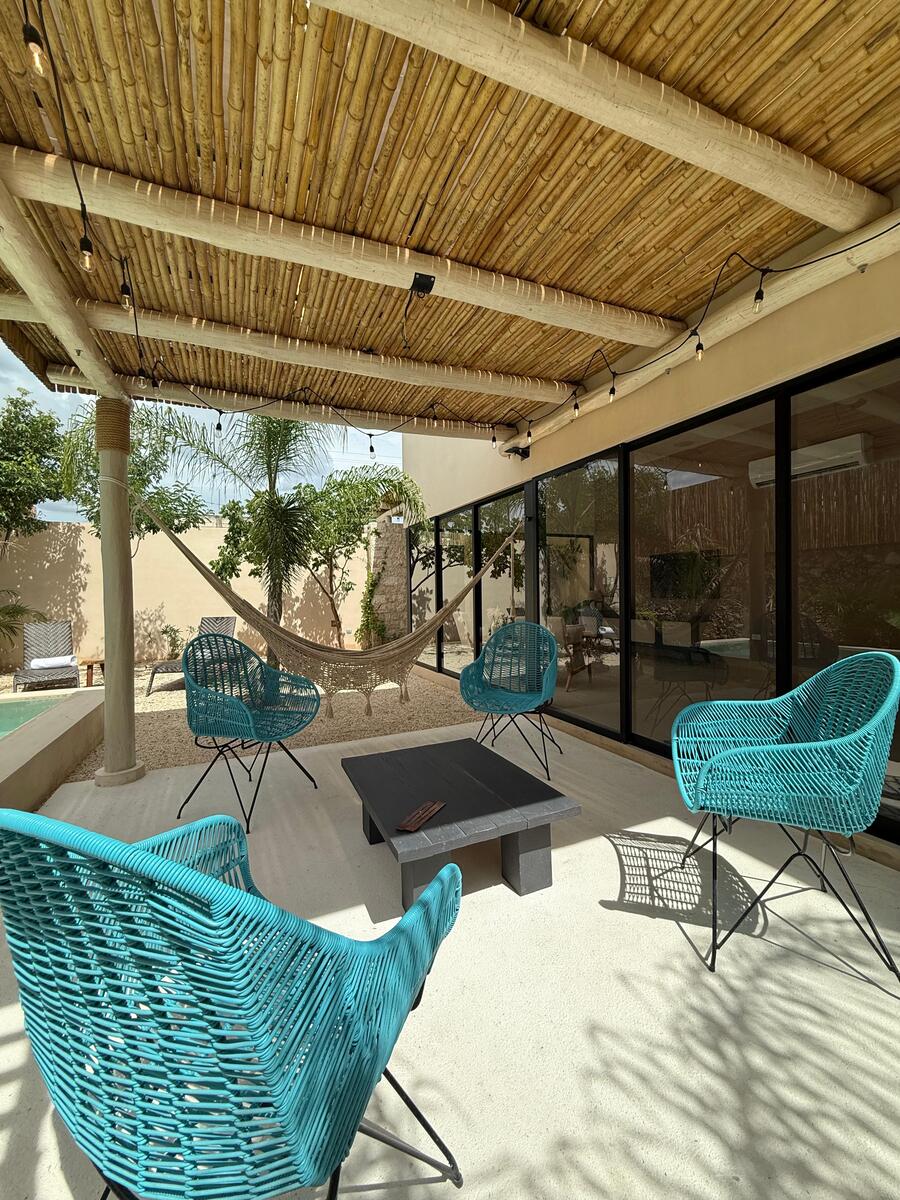 • Muros con acabados en chukum, piedra de la región y detalles decorativos en bambú