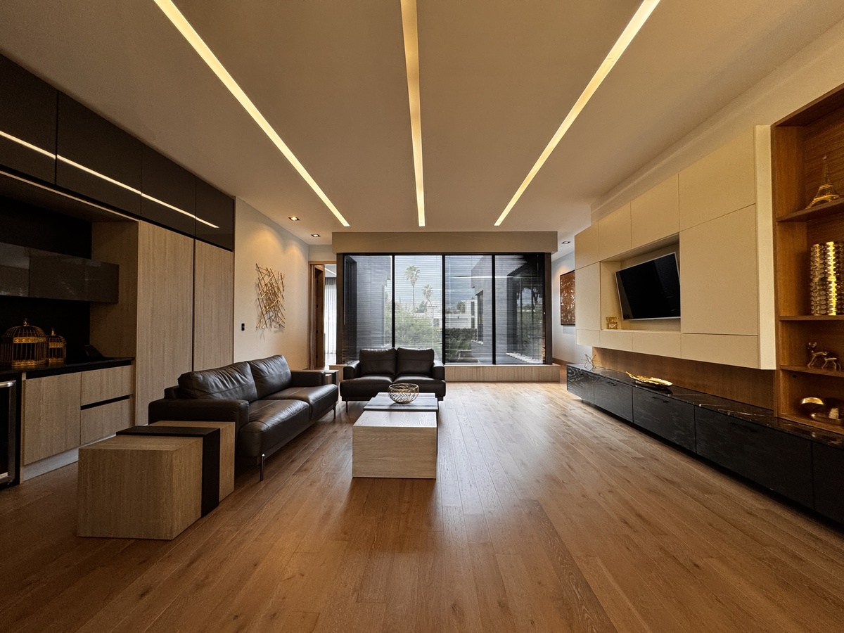 A solo una calle de Calzada Del Valle, esta residencia de diseño de autor combina arquitectura contemporánea con acabados premium y automatización total en iluminación, sonido y sistema de cámaras.