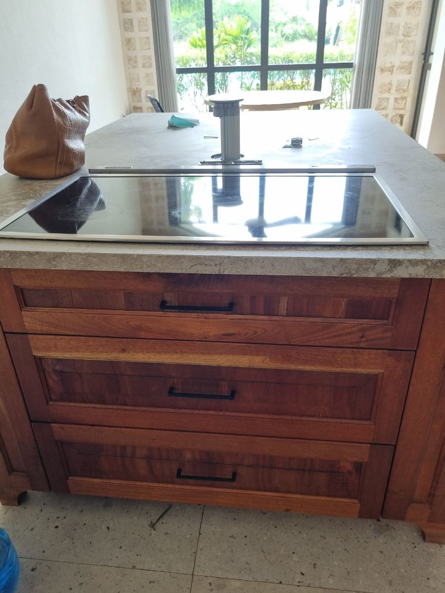 - Amplia Cocina con isla central equipada con lavavajillas, parrilla, campana, triturador,