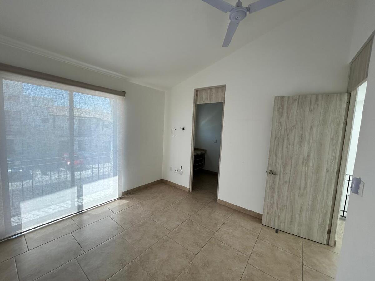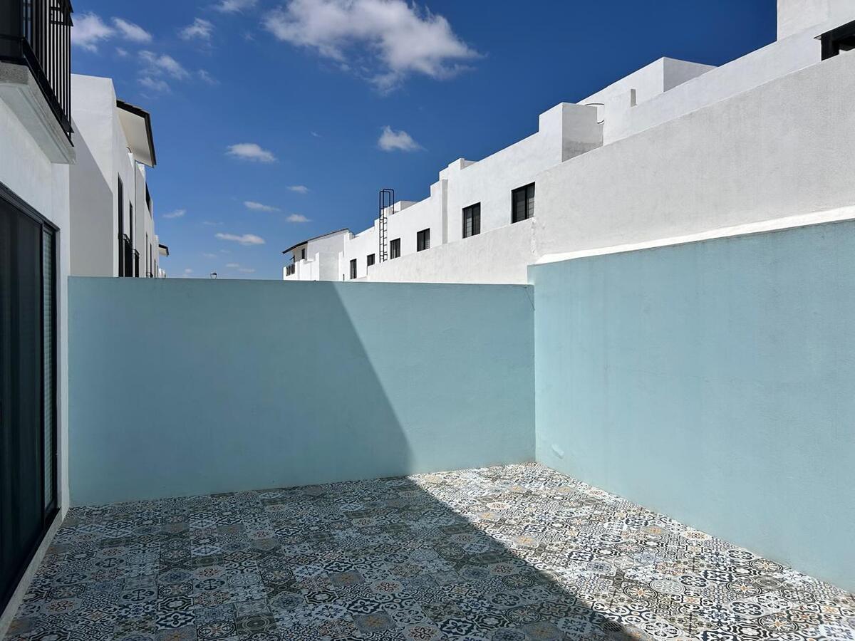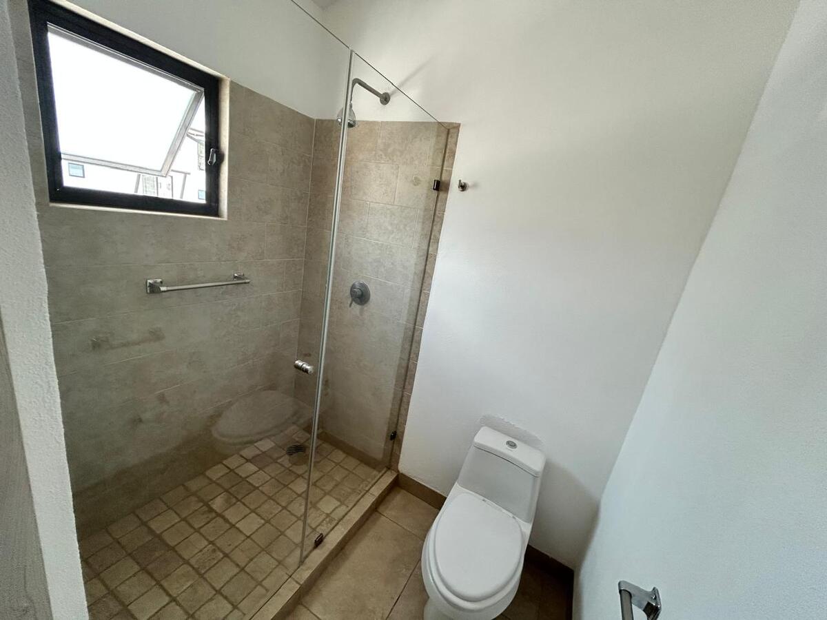 La recámara principal ofrece privacidad con walk-in closet y baño completo con cancelería de vidrio templado. Dos recámaras secundarias, cada una con closet, comparten un baño completo y cuentan con balcones decorativos que aportan luz y estilo.