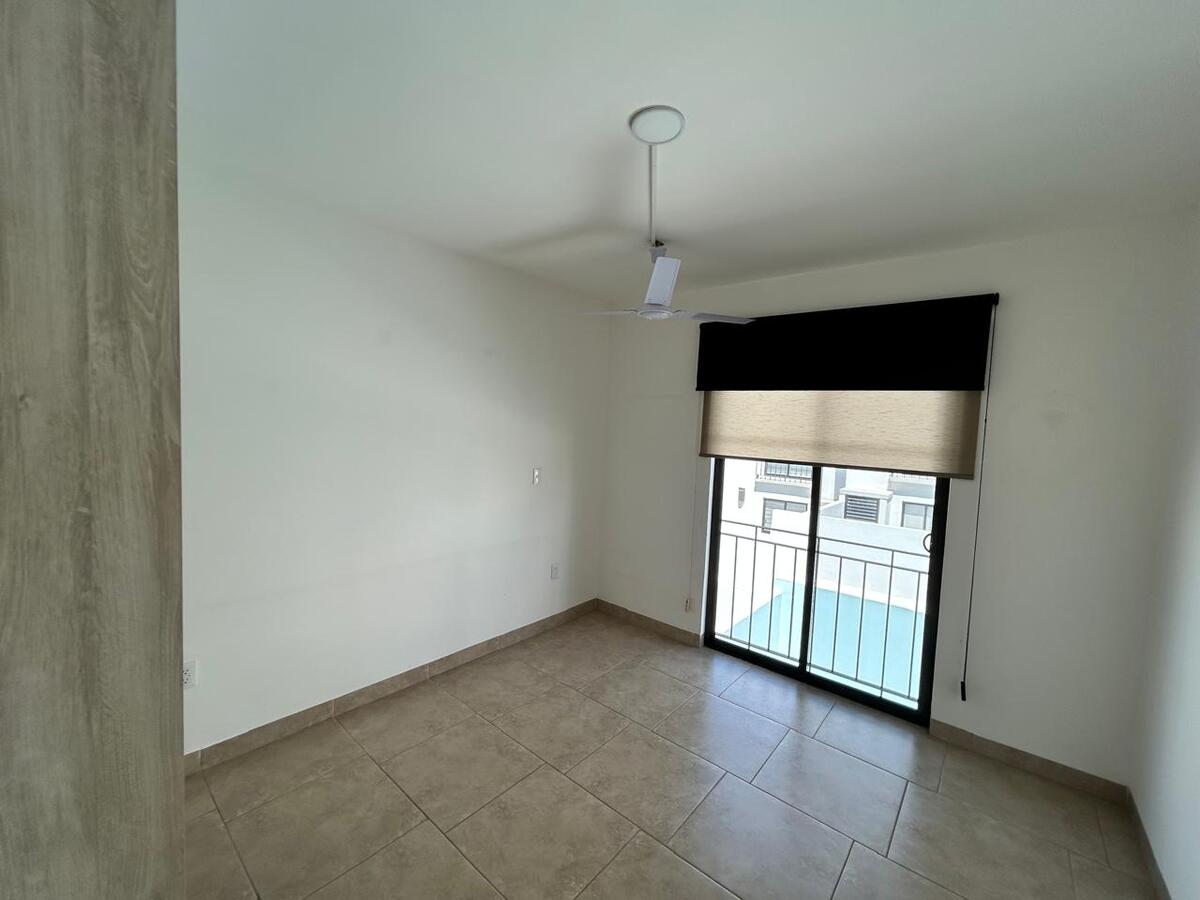 La propiedad fue entregada en 2021, con mantenimiento reciente, mosquiteros, persianas y blackout en recámaras. El condominio cuenta con alberca, palapa y áreas de juegos para niños, además de vigilancia 24/7 con acceso controlado.