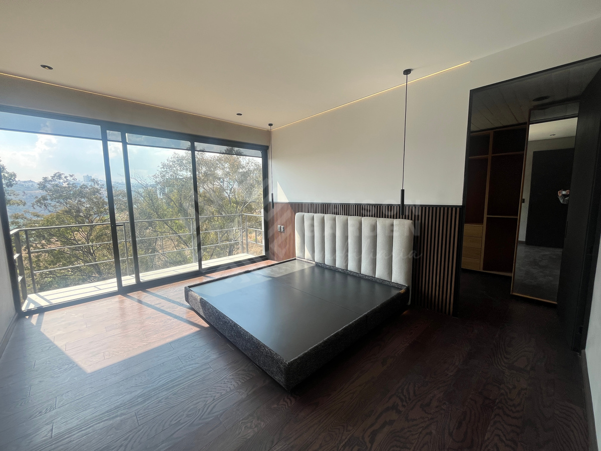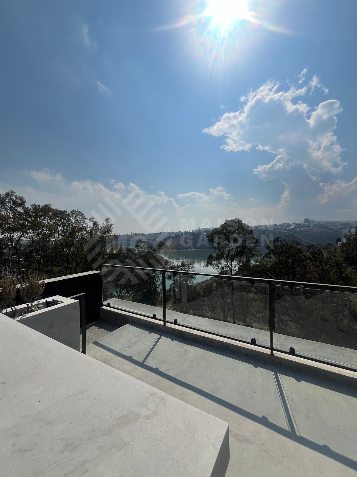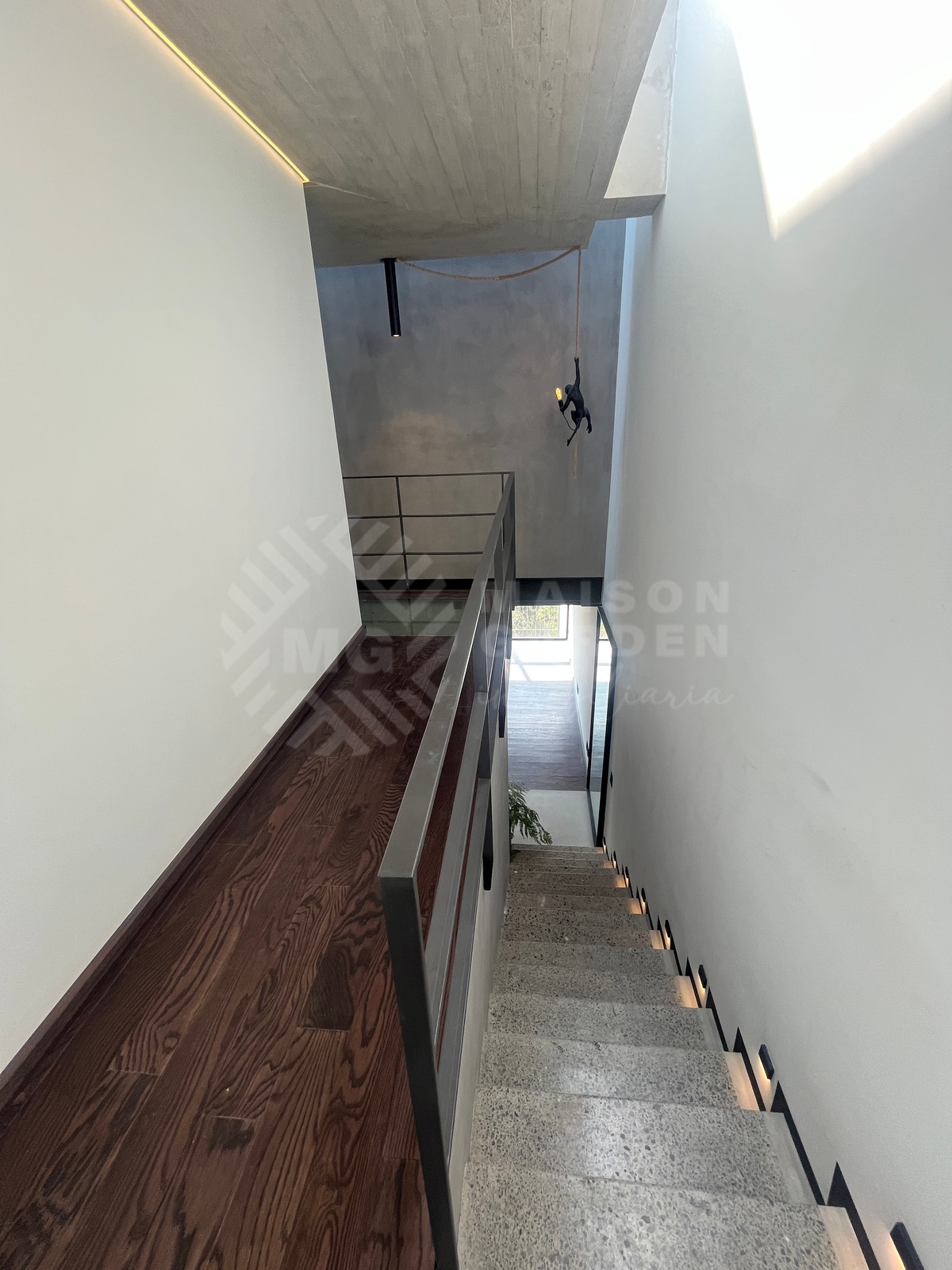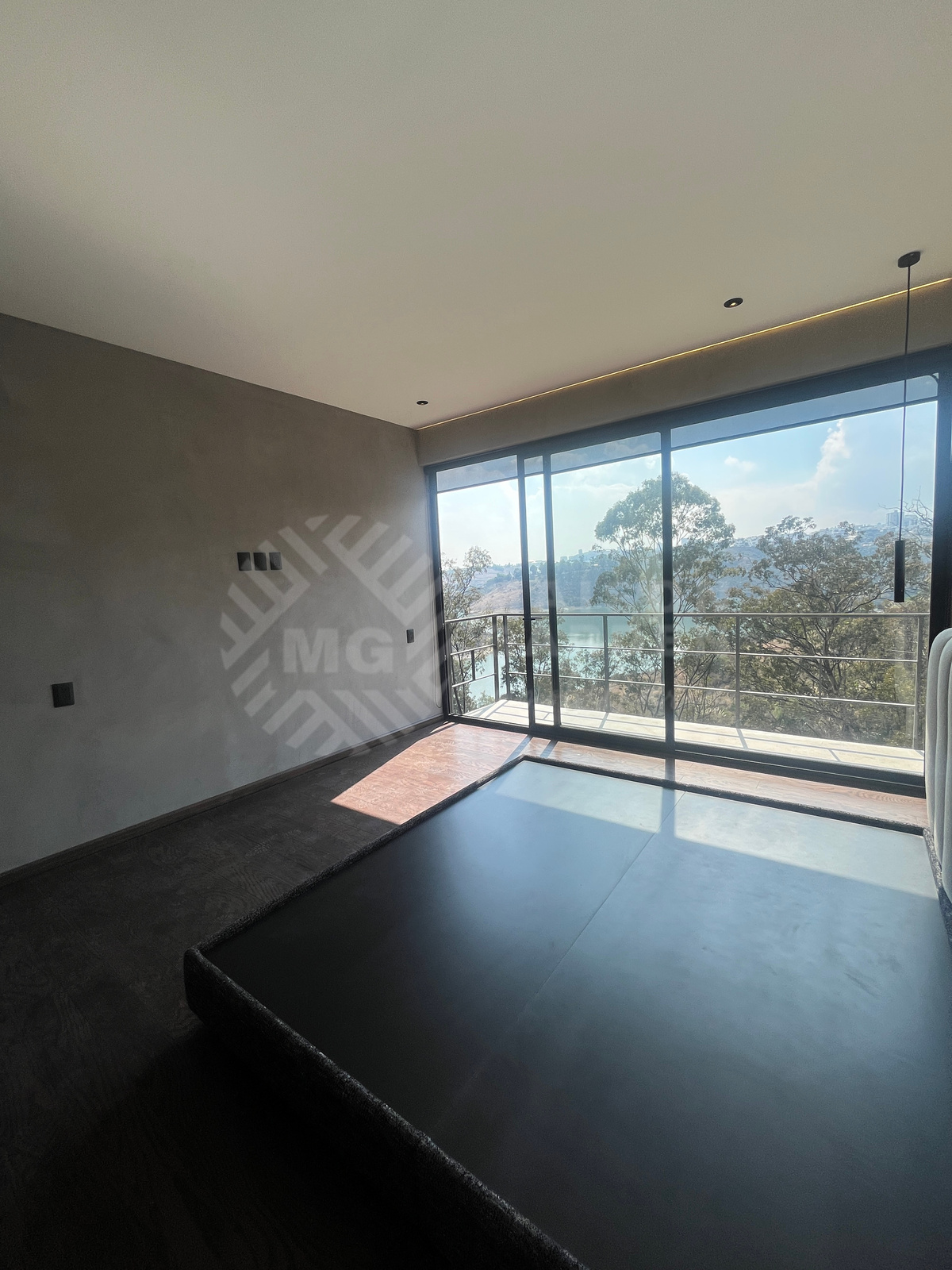 Subiendo por las escaleras llegaremos a la planta alta teniendo la recámara principal con vista a la presa y la recámara secundaria con vistas a una jardinera que se planteó evitando las vistas a la calle.