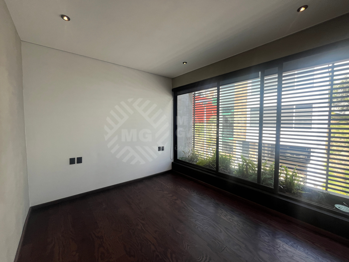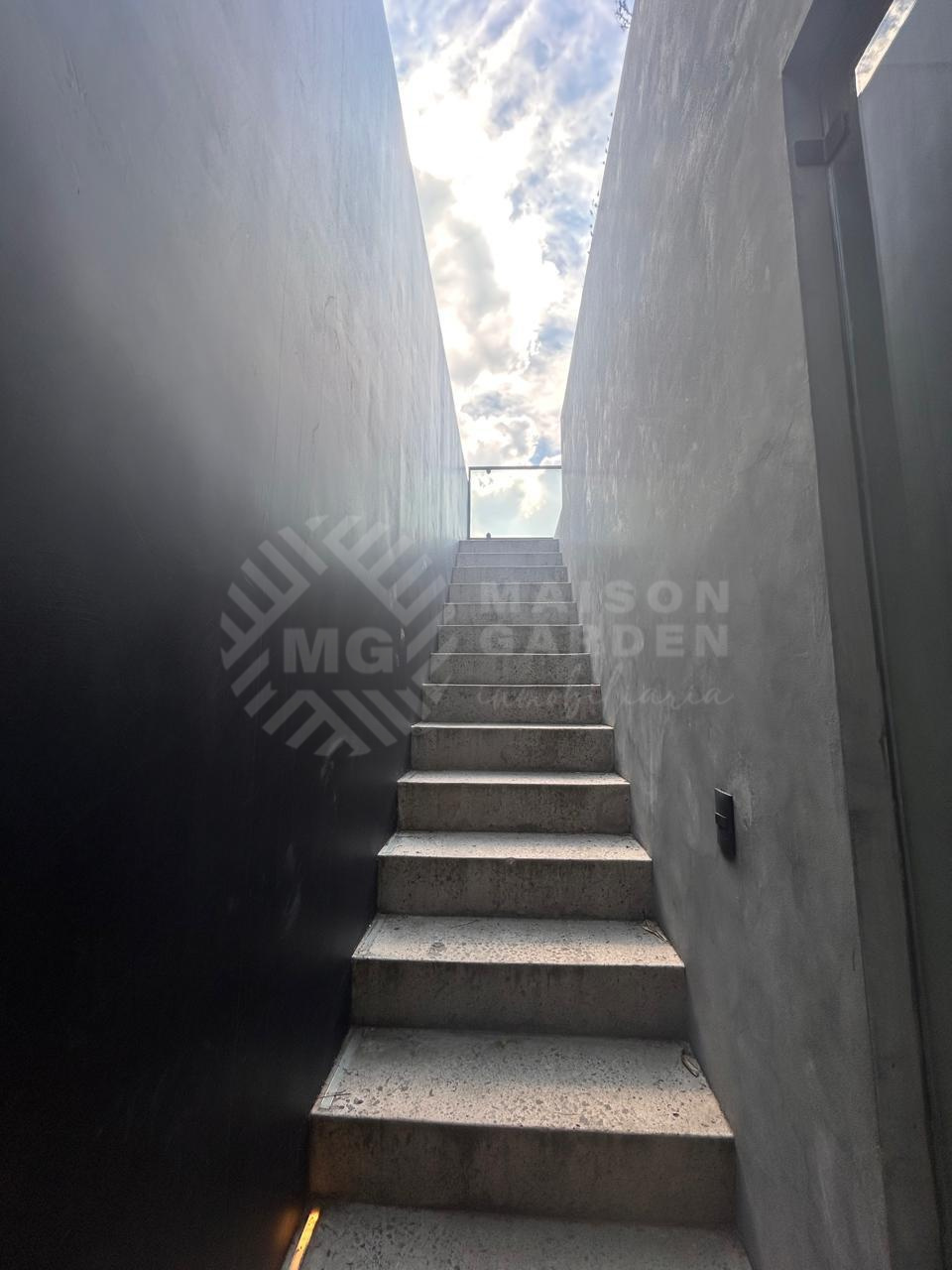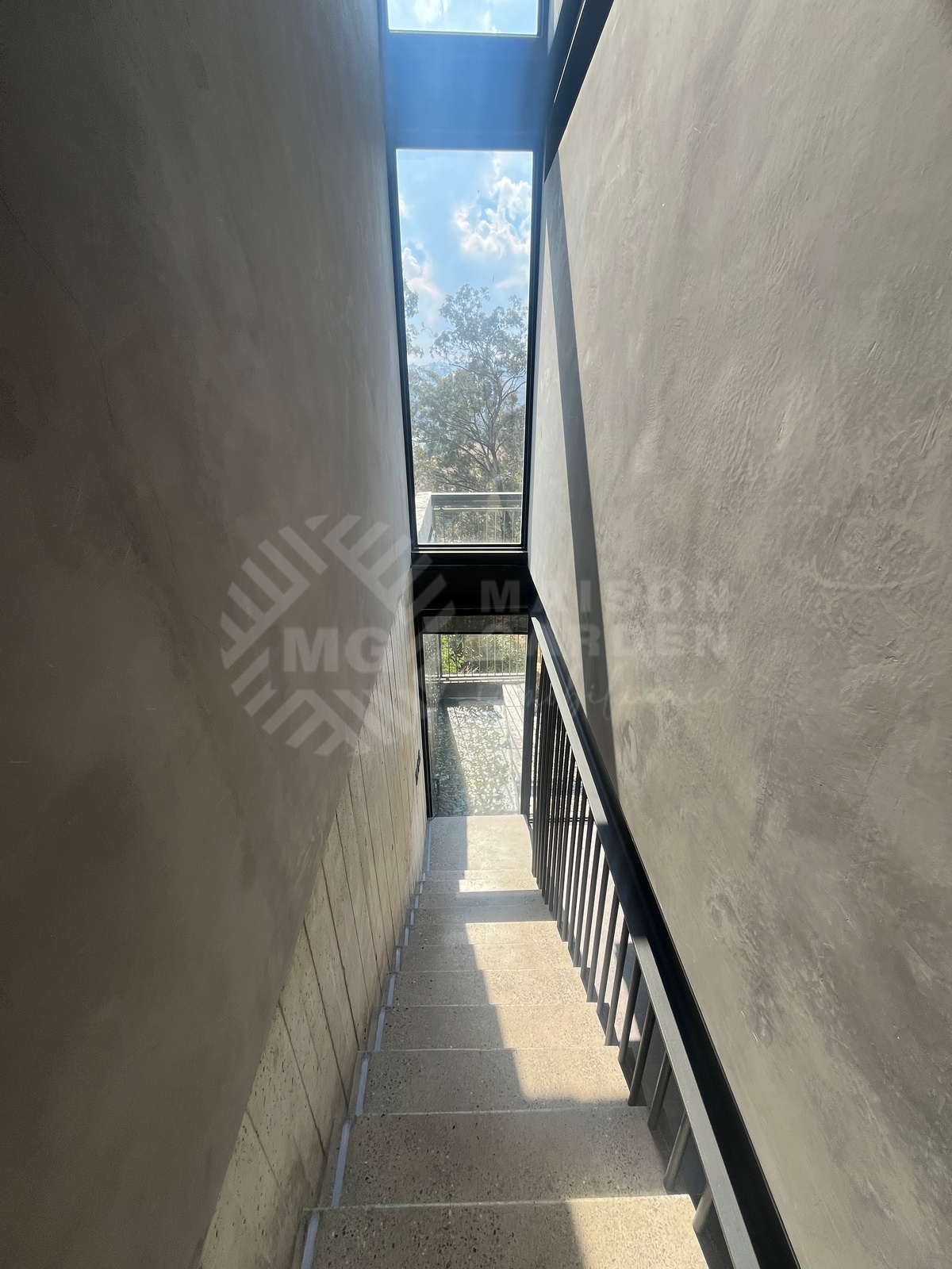 Subiendo por las escaleras llegaremos a la planta alta teniendo la recámara principal con vista a la presa y la recámara secundaria con vistas a una jardinera que se planteó evitando las vistas a la calle.