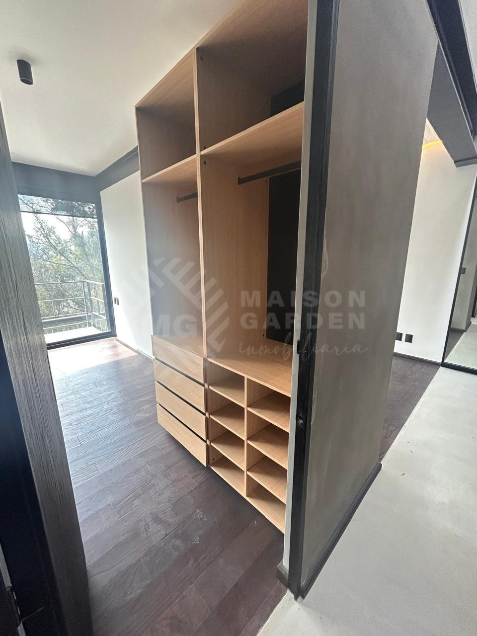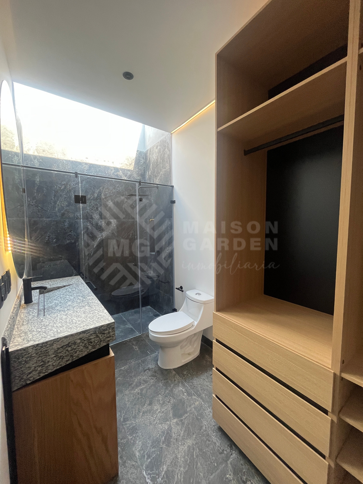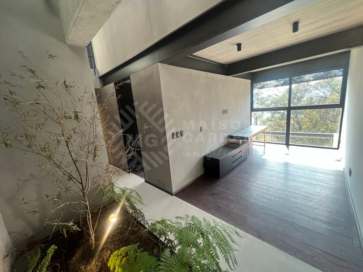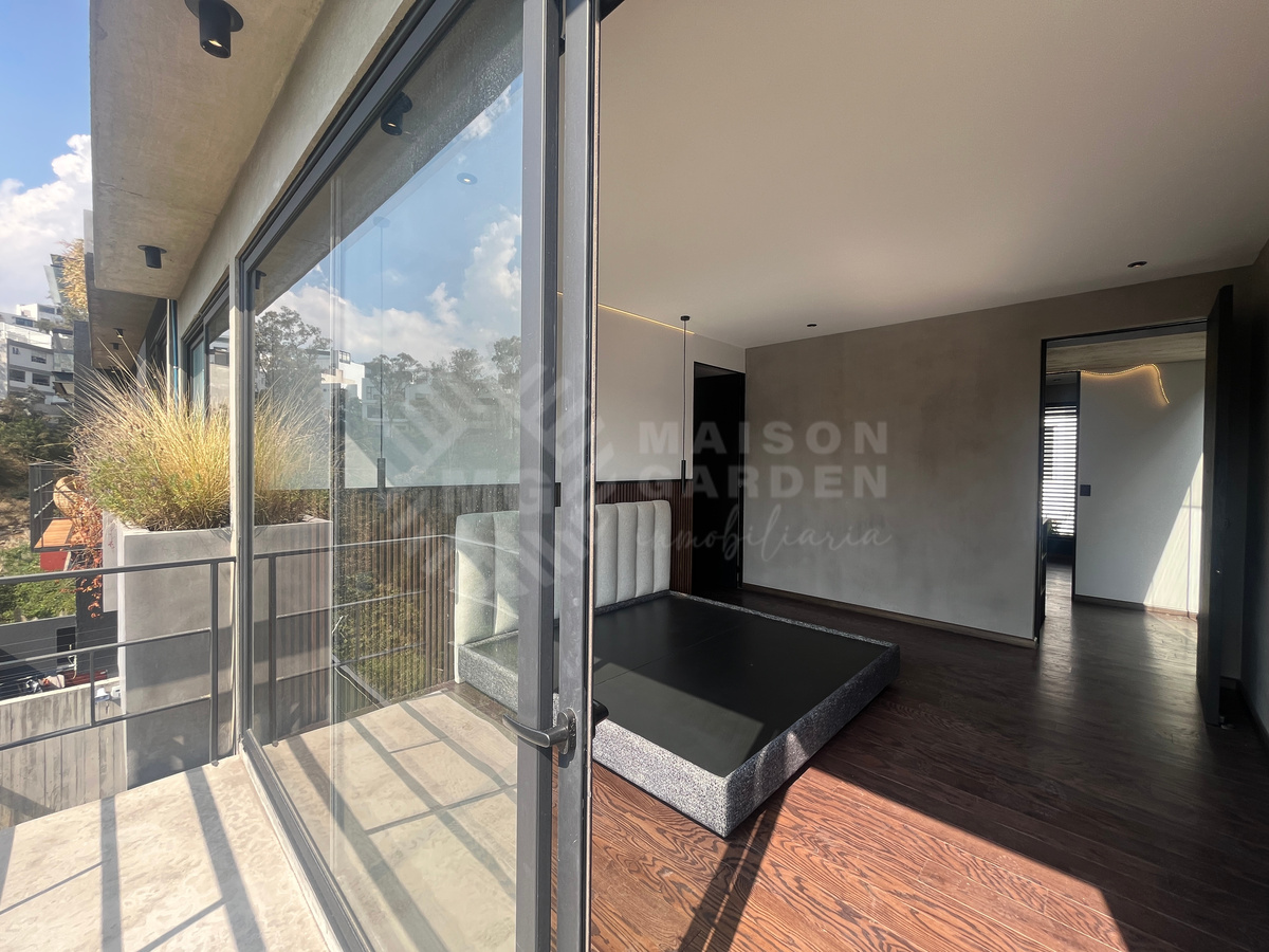 Subiendo por las escaleras llegaremos a la planta alta teniendo la recámara principal con vista a la presa y la recámara secundaria con vistas a una jardinera que se planteó evitando las vistas a la calle.