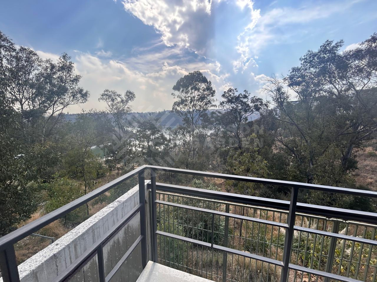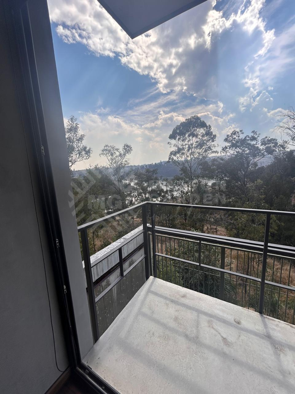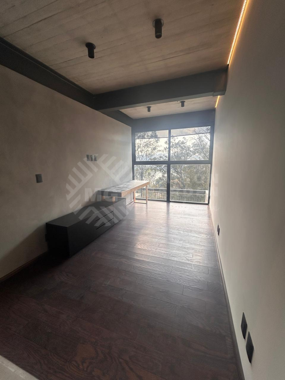 En el nivel superior tenemos un pasillo de doble altura que nos comunica al área privada encontrandonos con una sala de T.V. y a su lado una recámara ambas con vistas a la presa Madín.