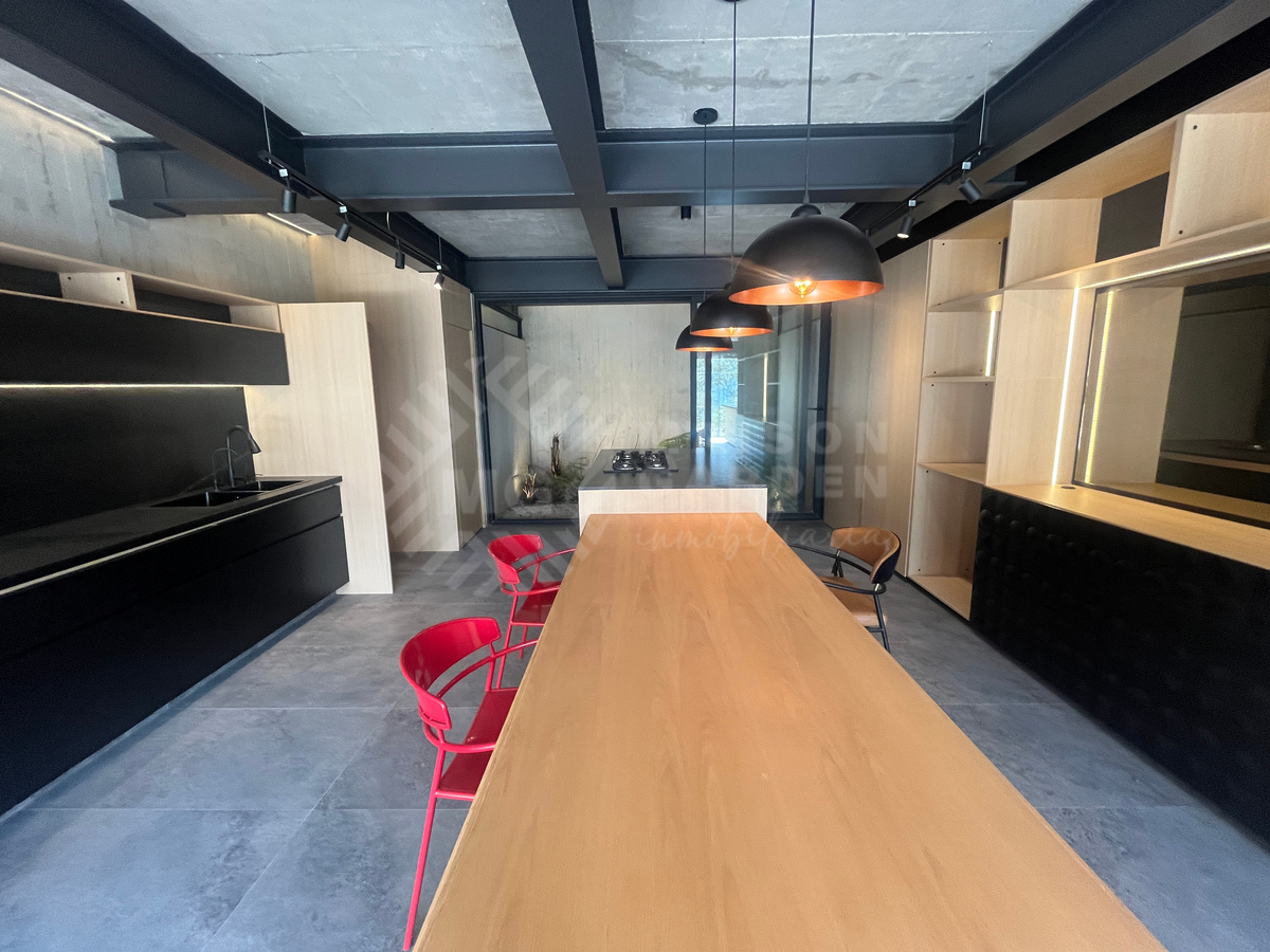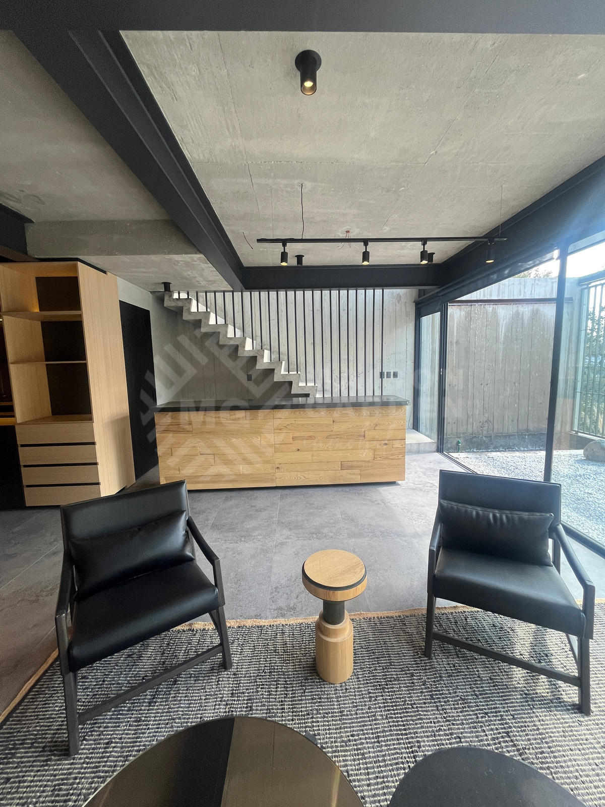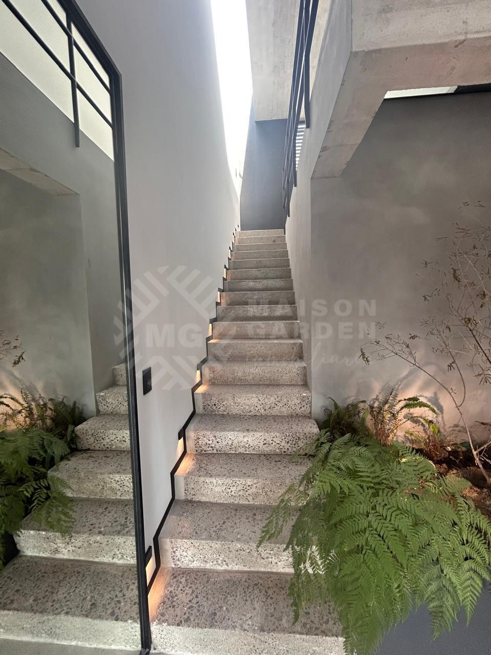 El sótano, donde se encuentra el área social aprovechando la planta con mayor número de metros cuadrados conformada por cocina, comedor, sala, barra de bar y el jardín zen buscando que sea el área de encuentro y donde se viva el mayor tiempo posible.