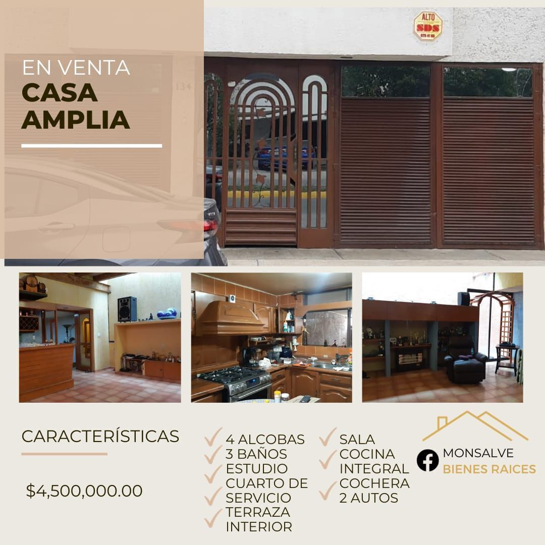 Planta Baja: Sala comedor, cocina integral, 1/2 baño, estudio, salón de juegos, cuarto de servicio con baño completo, cochera para 2 autos.
