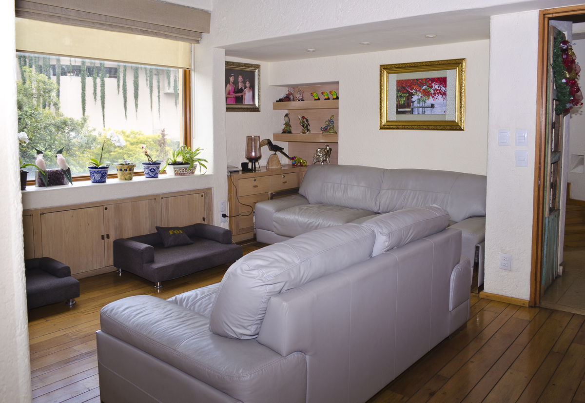 On the top level, we find a beautiful terrace with a nice view and a jacuzzi.Esta casa tiene un hermoso y funcional proyecto, el cual se llevo a cabo en un terreno de forma irregular y topografía descendente.