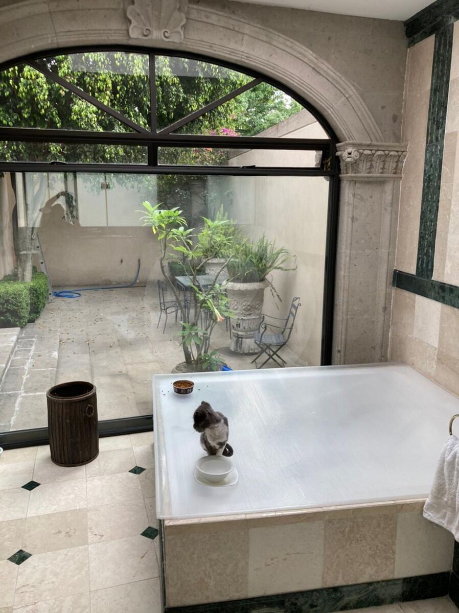 Con las puertas: 2 recámaras secundarias , ambas con vestidor y baño. Toda la casa tiene techos doble altura y la distingue la impresionante luz que invade todos sus espacios.