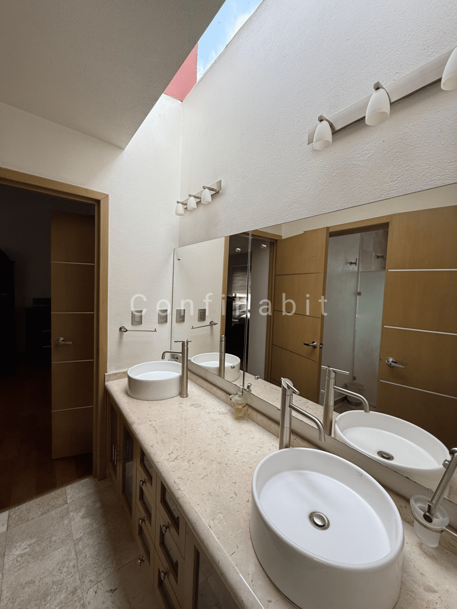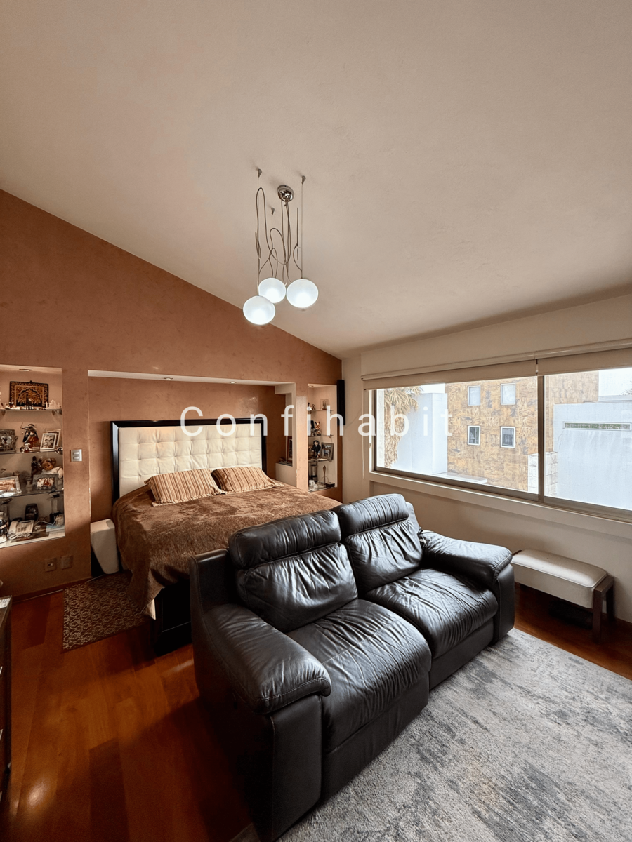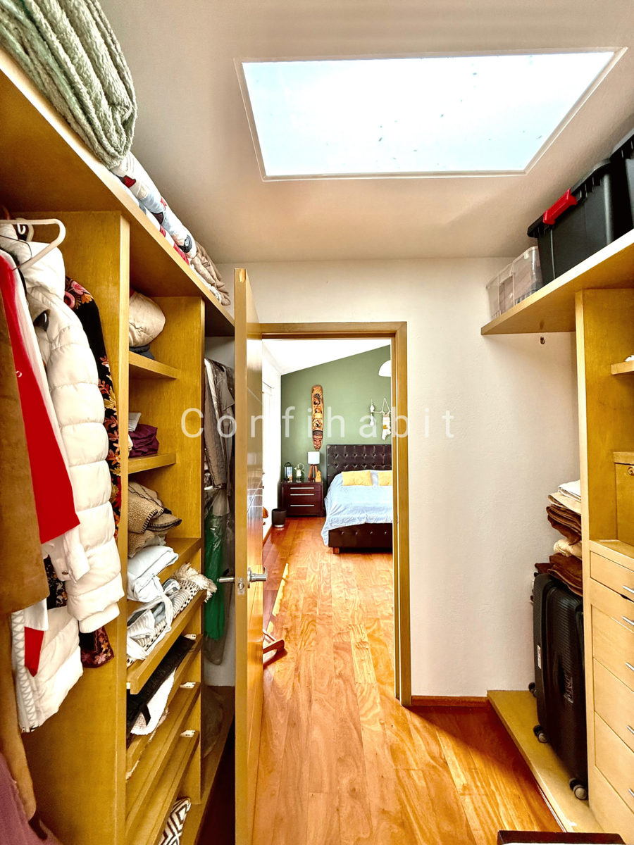 4 recámaras, dos con clóset y comparten baño en medio de las dos habitaciones, tercer recámara con baño y vestidor, recámara principal con muy buen espacio, amplio vestidor y baño completo, área de TV o despacho y clóset de blancos.