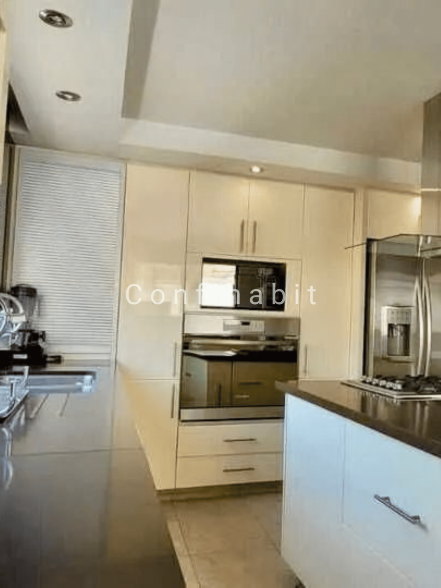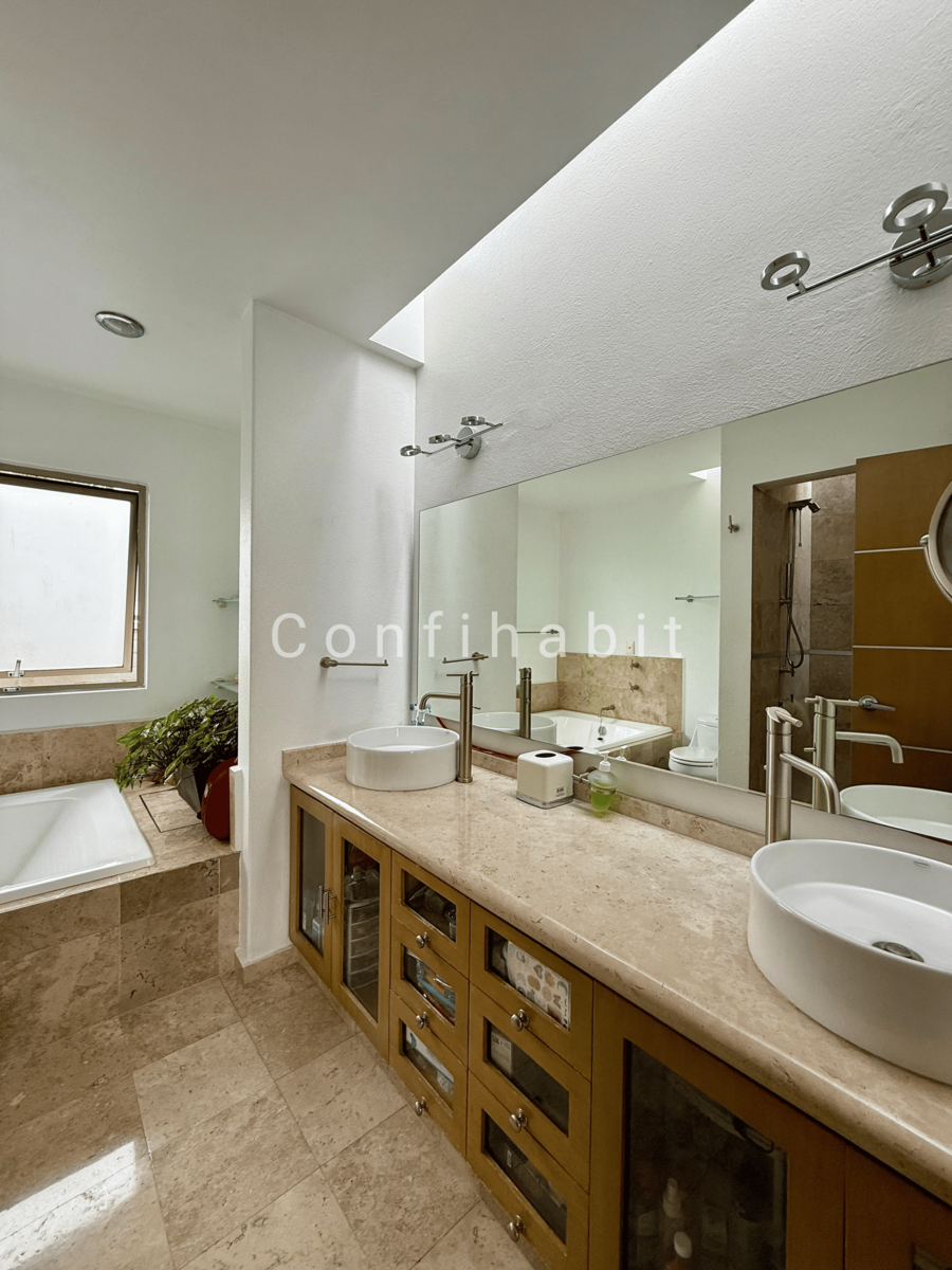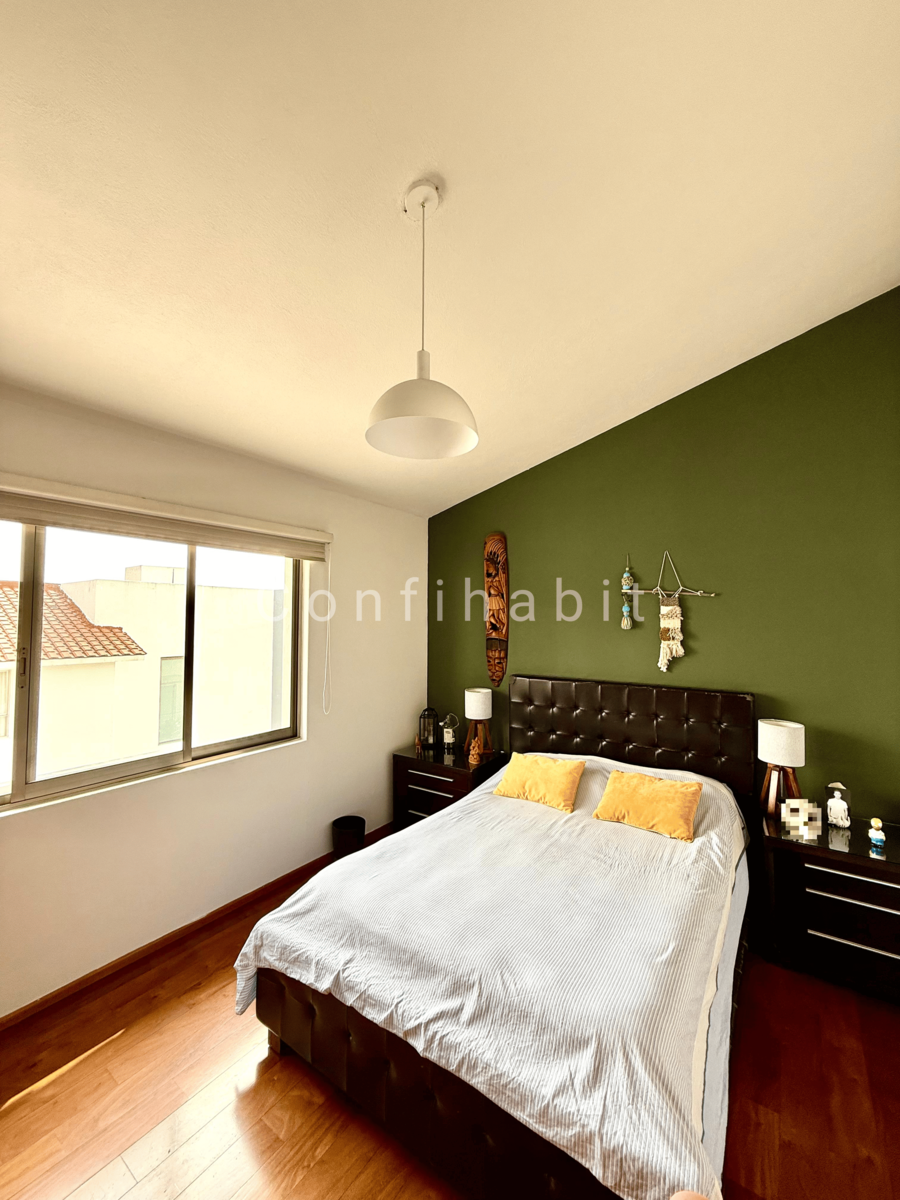 4 recámaras, dos con clóset y comparten baño en medio de las dos habitaciones, tercer recámara con baño y vestidor, recámara principal con muy buen espacio, amplio vestidor y baño completo, área de TV o despacho y clóset de blancos.