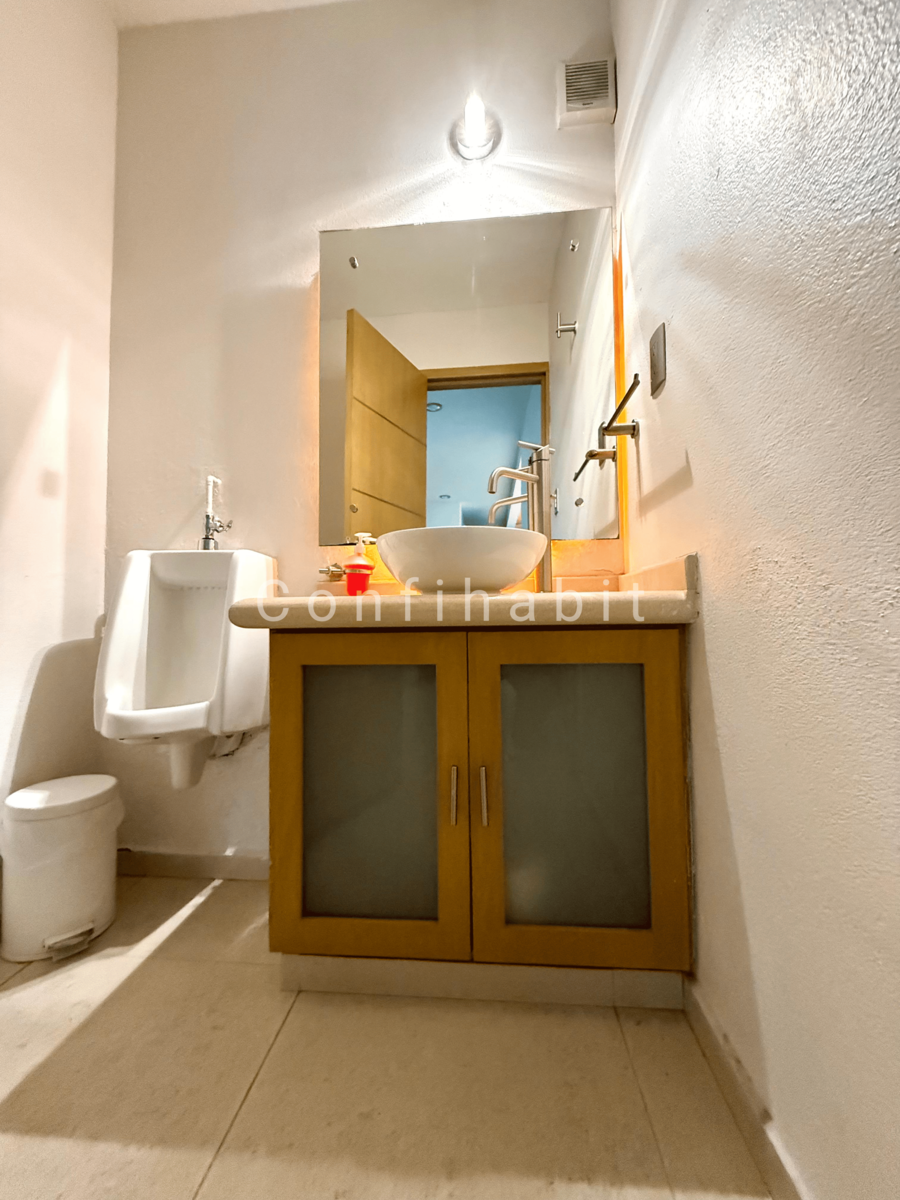 Primer nivel: amplia estancia en espacios separados para sala, comedor, área de bar, sala de TV, cocina equipada, área de desayunador, doble despensa, área de lavado y tendido, oficina y bodega.