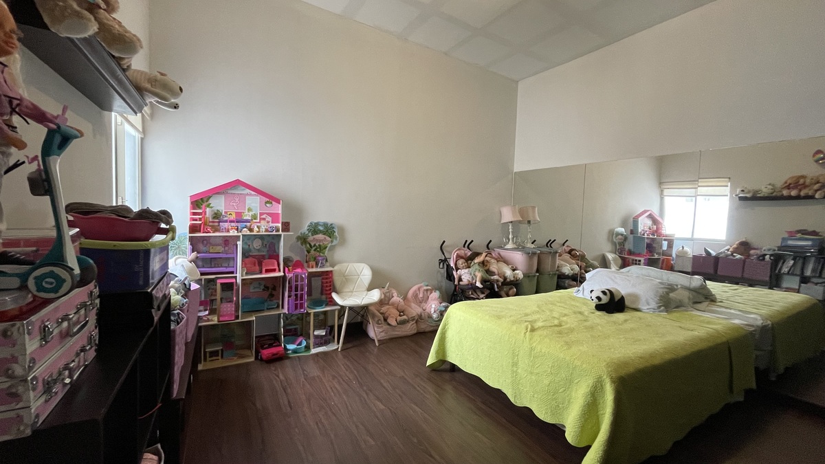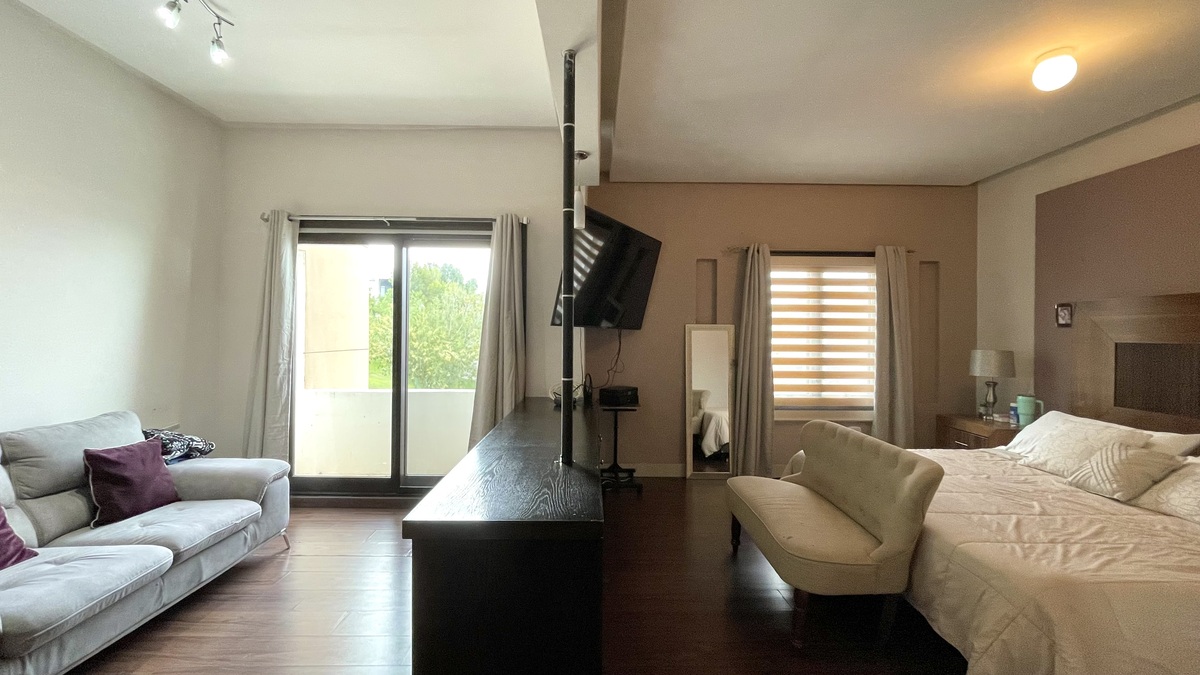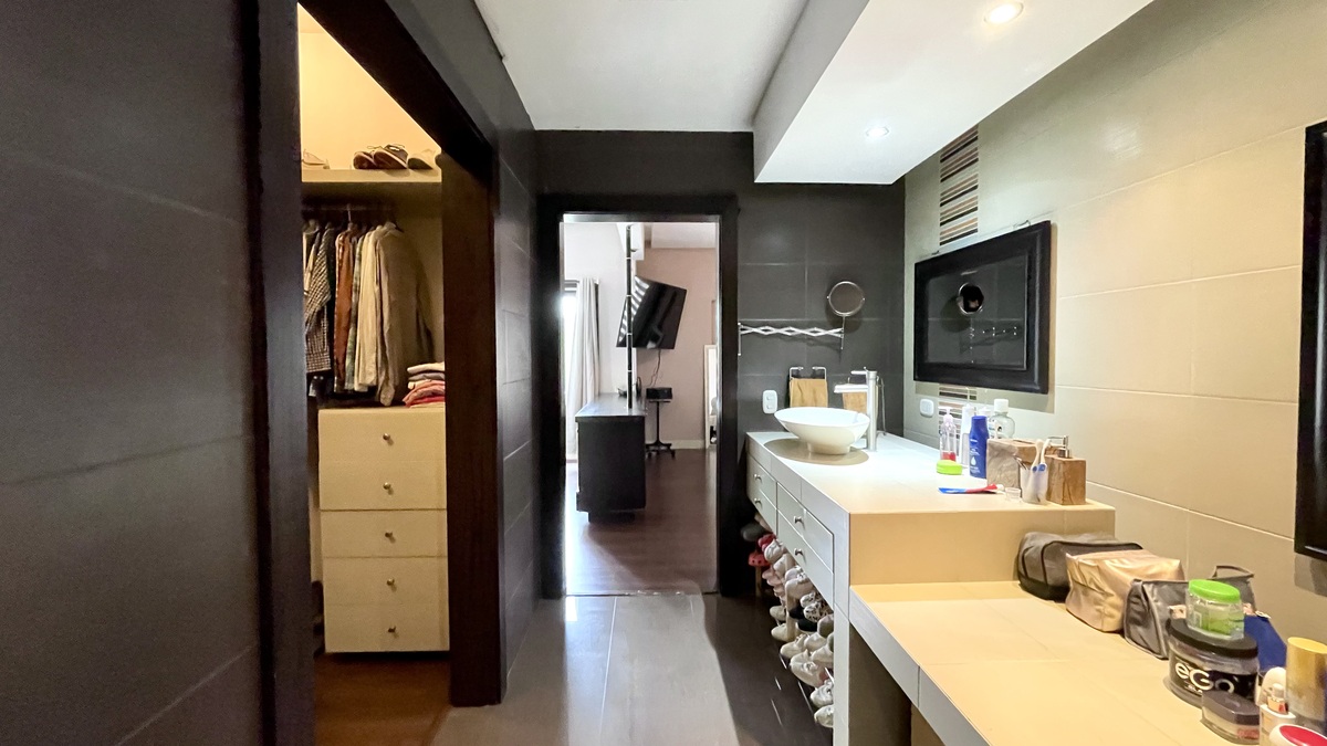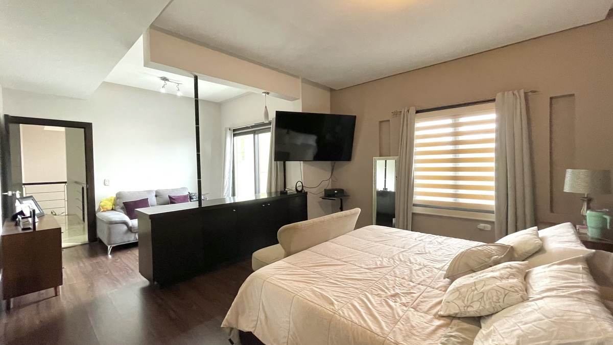 - Master bedroom with living area, full bathroom, and walk-in closet