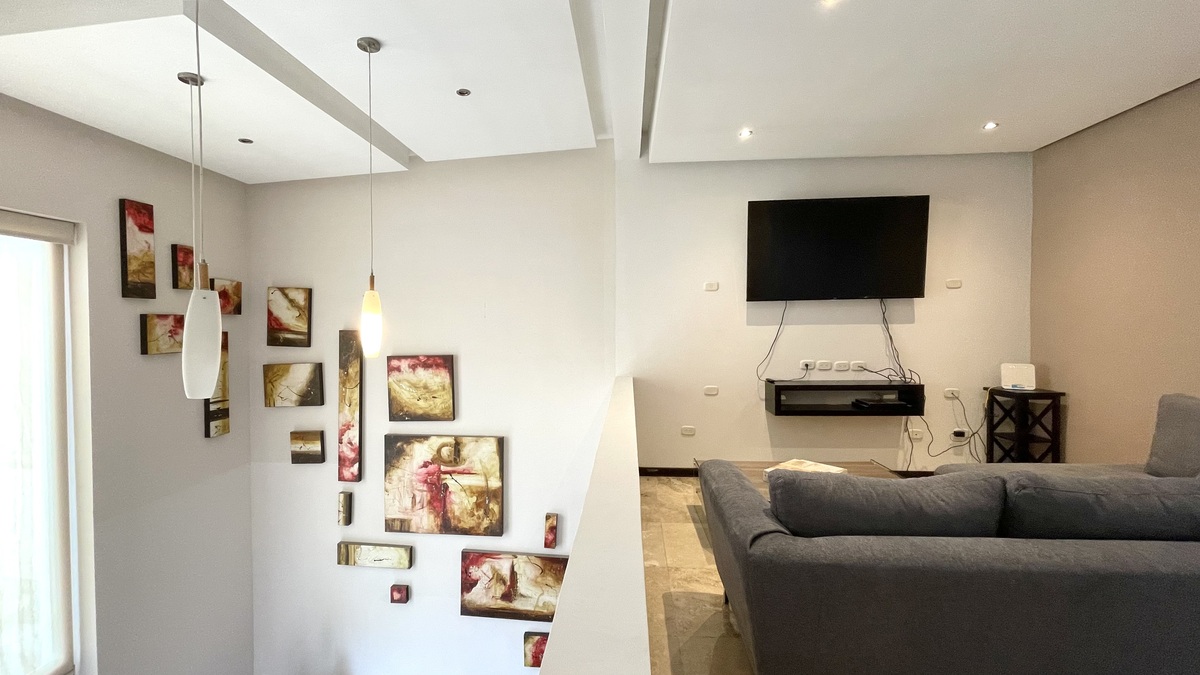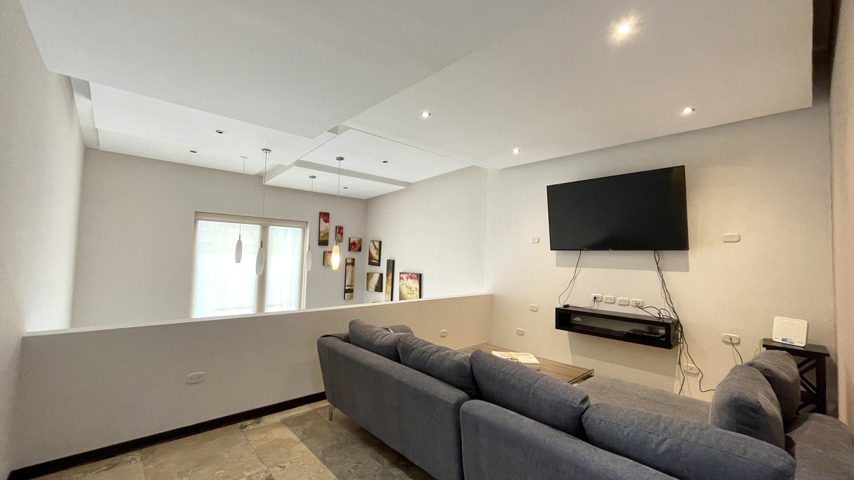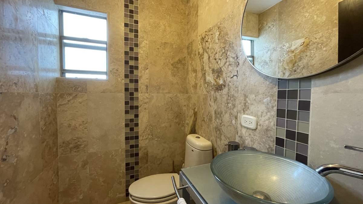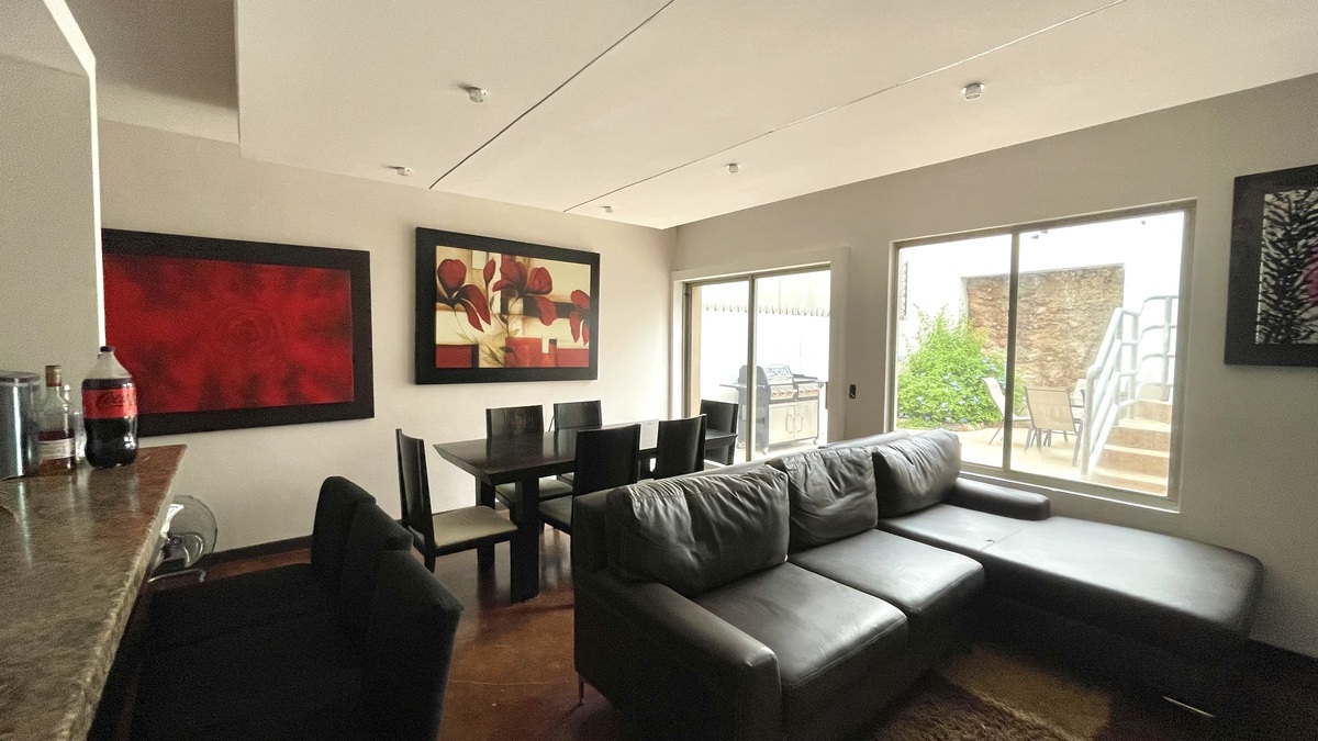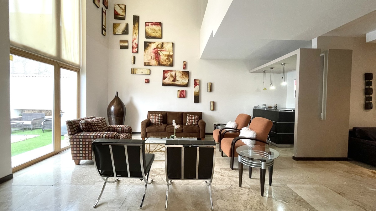 - Master bedroom with living area, full bathroom, and walk-in closet