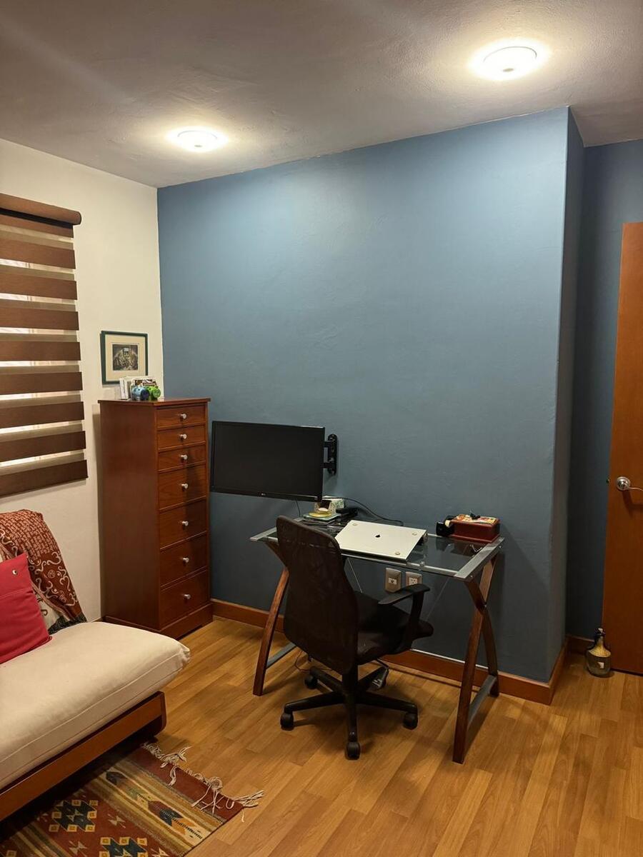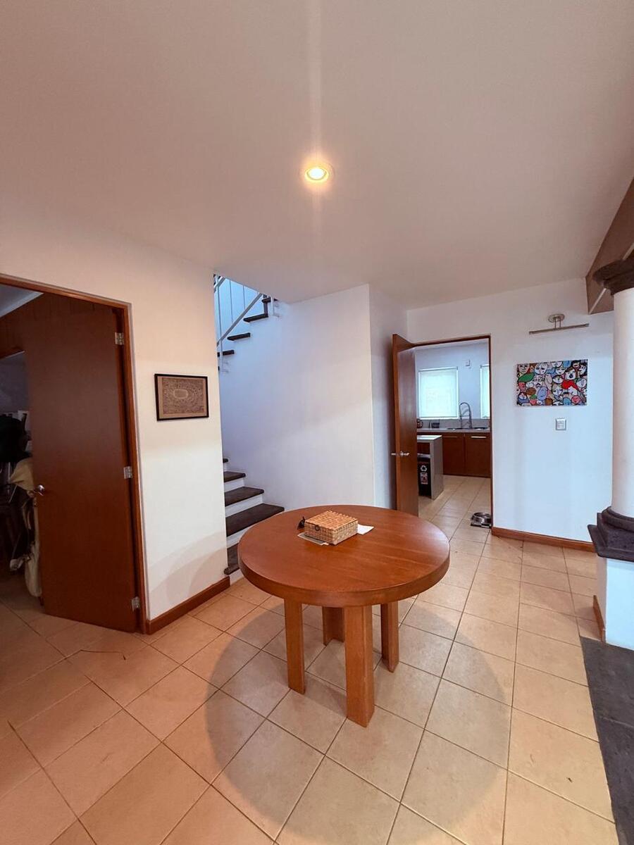 CASA EN VENTA EN BOSQUES TRES MARIAS, MORELIA. En planta baja cuenta con cocina integral con barra desayunador, acabados de granito, sala, comedor, medio baño, estudio, patio de servicio techado con bodega, amplio jardín con acceso a áreas verdes del fraccionamiento y cochera para 2 autos. En planta alta cuenta con 3 recámaras, la recámara principal con vestidor y baños completo, las otras 2 recámaras comparten baño completo, sala de televisión y clóset de blancos. Fraccionamiento privado con seguridad las 24 hrs.
