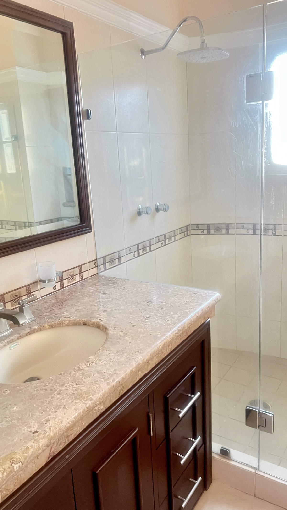 3 bedrooms with full bathrooms, the main one with a large walk-in closet and tub. The two secondary ones with bathroom and wall closet.
