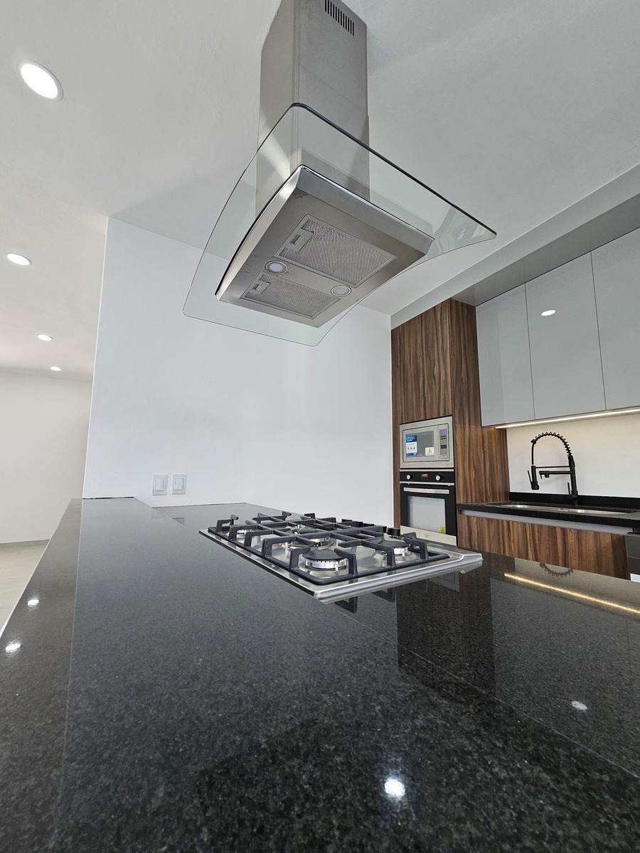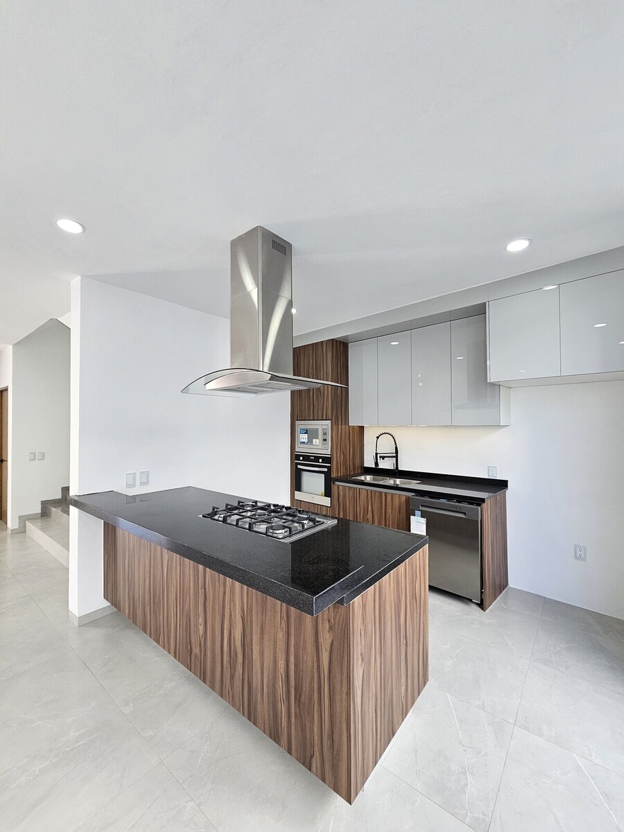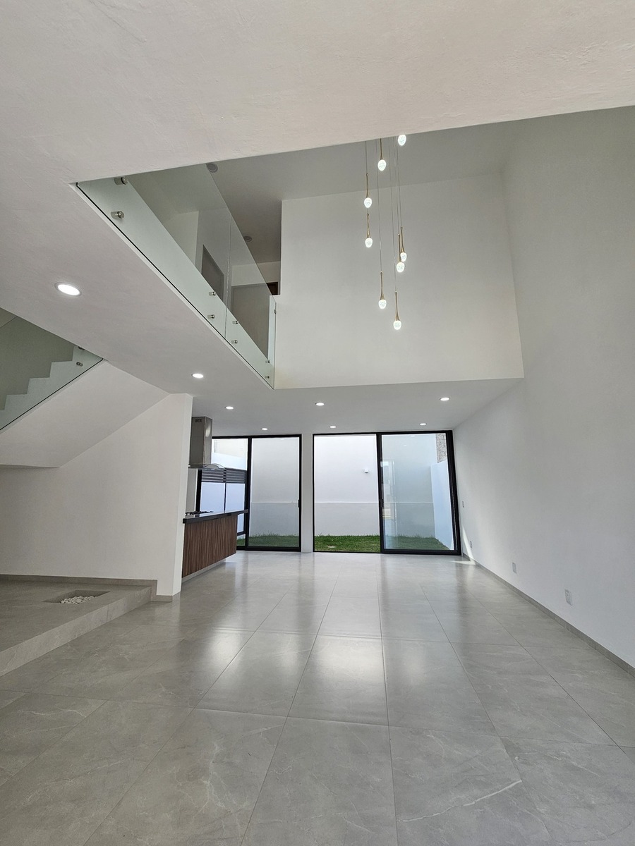 Amplia sala a doble altura: Un espacio luminoso y acogedor que te recibirá con elegancia.Cocina de ensueño: Diseñada con acabados de alto brillo, piedra de granito y una práctica barra desayunadora. Equipamiento de primera, incluyendo torre de hornos, lavavajillas, parrilla y campana, además de luces LED que añaden un toque moderno.Patio con jardín: Perfecto para disfrutar de momentos al aire libre Cuarto de servicio: Con salida de gas para secadora, brindando funcionalidad y comodidad.