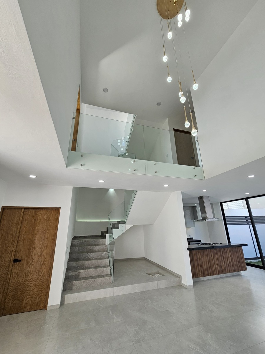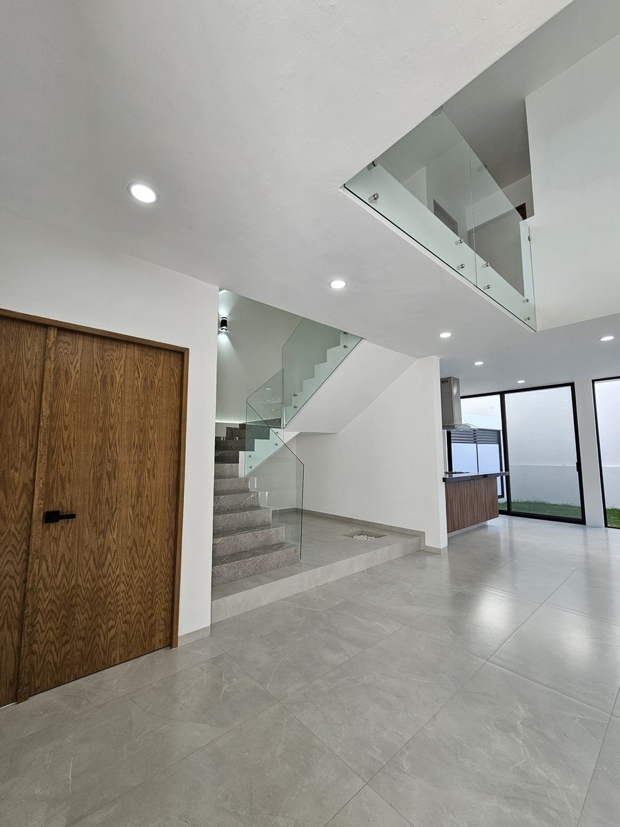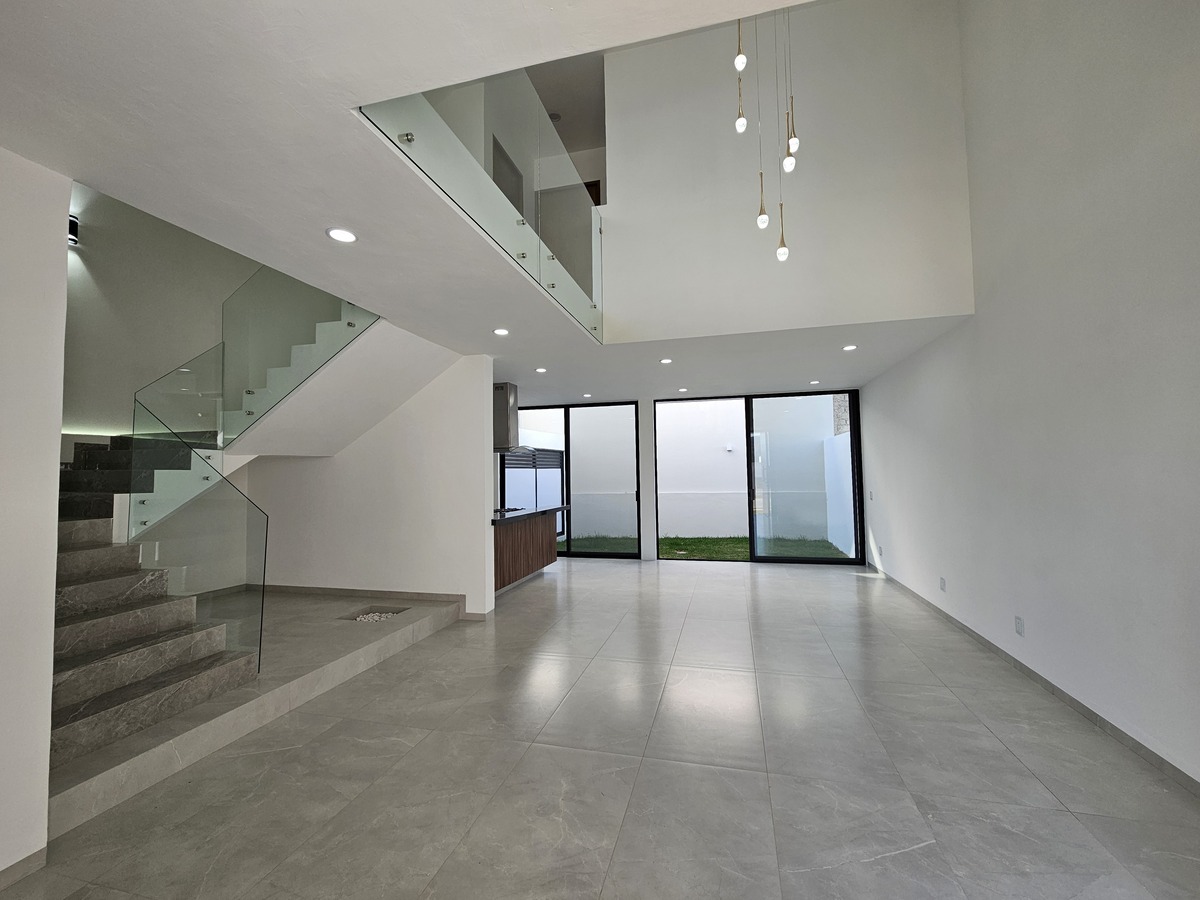Amplia sala a doble altura: Un espacio luminoso y acogedor que te recibirá con elegancia.Cocina de ensueño: Diseñada con acabados de alto brillo, piedra de granito y una práctica barra desayunadora. Equipamiento de primera, incluyendo torre de hornos, lavavajillas, parrilla y campana, además de luces LED que añaden un toque moderno.Patio con jardín: Perfecto para disfrutar de momentos al aire libre Cuarto de servicio: Con salida de gas para secadora, brindando funcionalidad y comodidad.