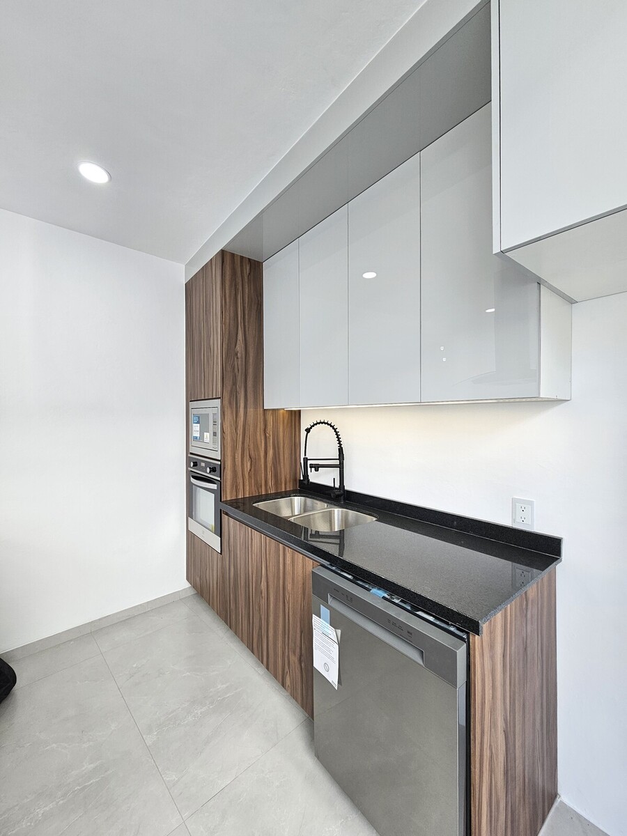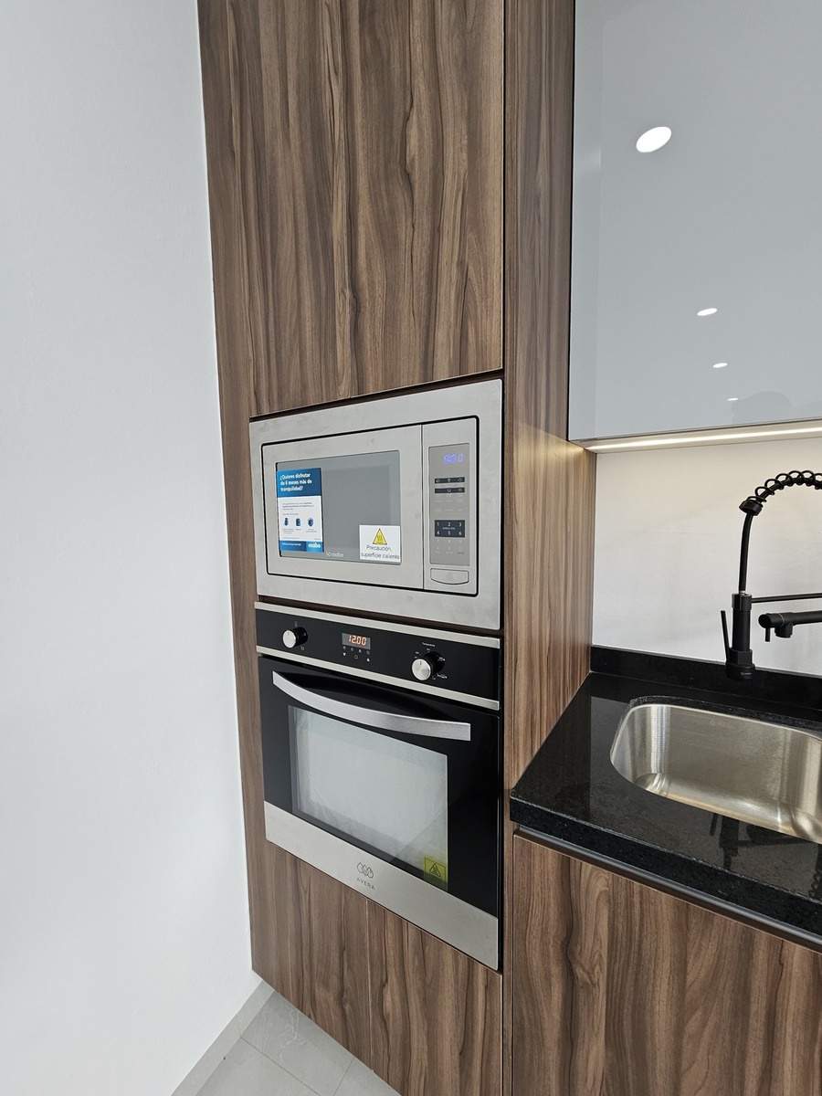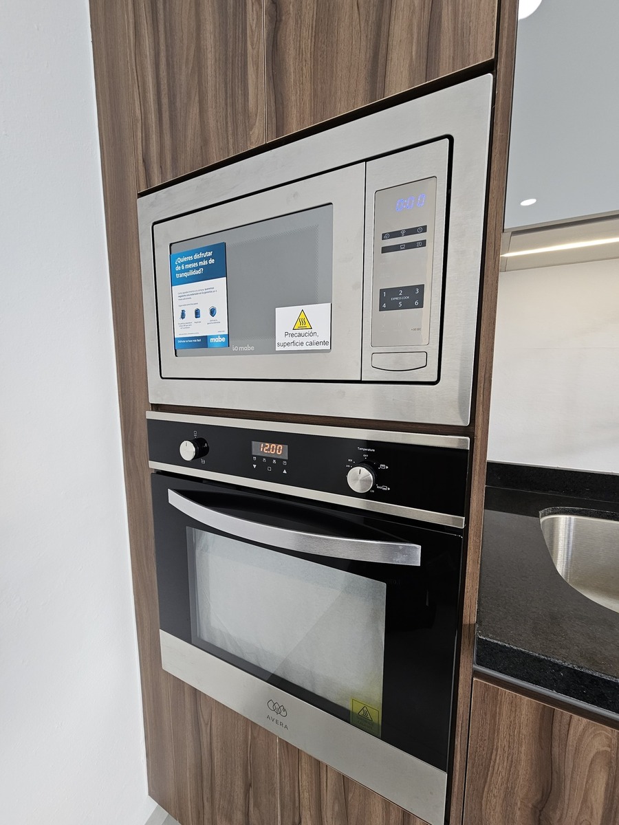 Spacious double-height living room: A bright and cozy space that will welcome you with elegance. Dream kitchen: Designed with high-gloss finishes, granite stone, and a practical breakfast bar. Top-notch equipment, including an oven tower, dishwasher, grill, and hood, plus LED lights that add a modern touch. Patio with garden: Perfect for enjoying outdoor moments. Service room: With gas outlet for dryer, providing functionality and comfort.