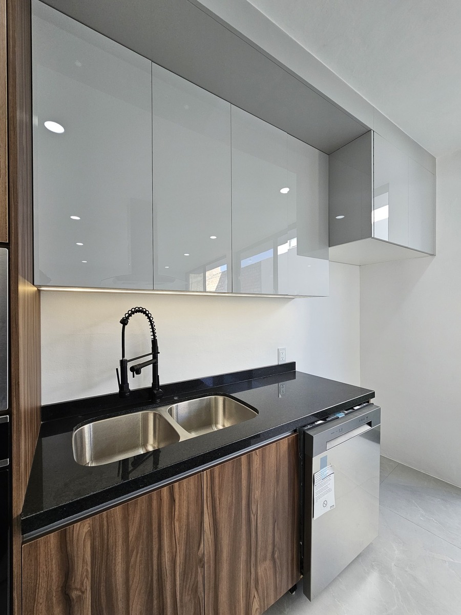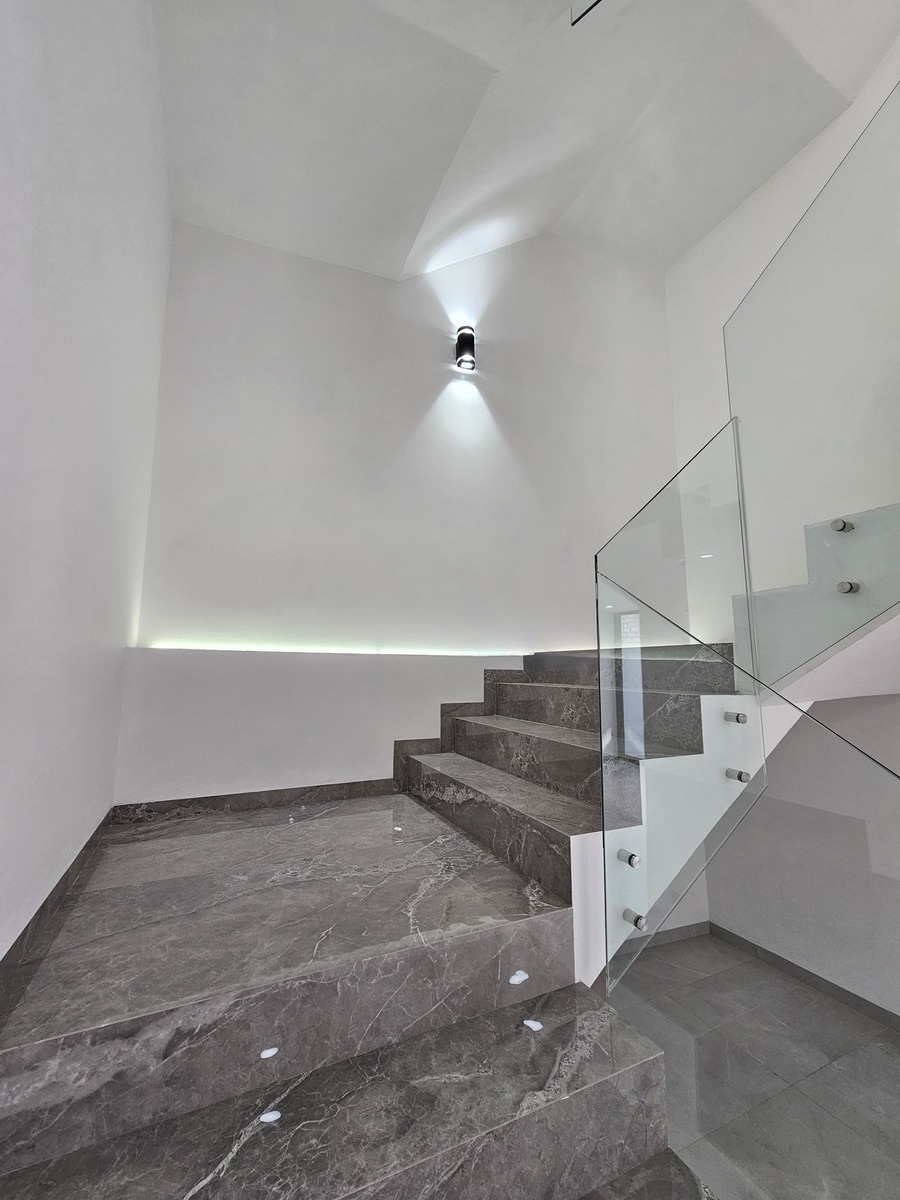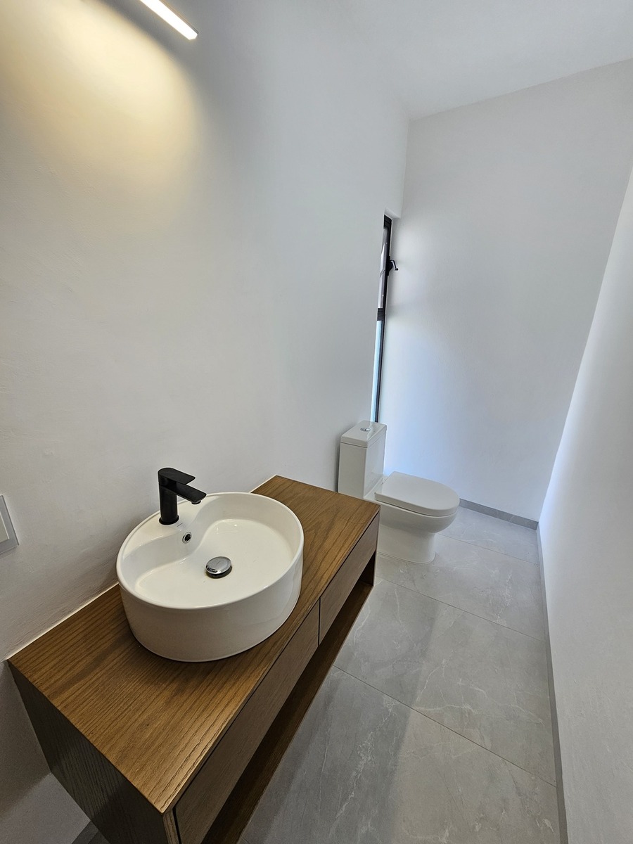 Spacious double-height living room: A bright and cozy space that will welcome you with elegance. Dream kitchen: Designed with high-gloss finishes, granite stone, and a practical breakfast bar. Top-notch equipment, including an oven tower, dishwasher, grill, and hood, plus LED lights that add a modern touch. Patio with garden: Perfect for enjoying outdoor moments. Service room: With gas outlet for dryer, providing functionality and comfort.