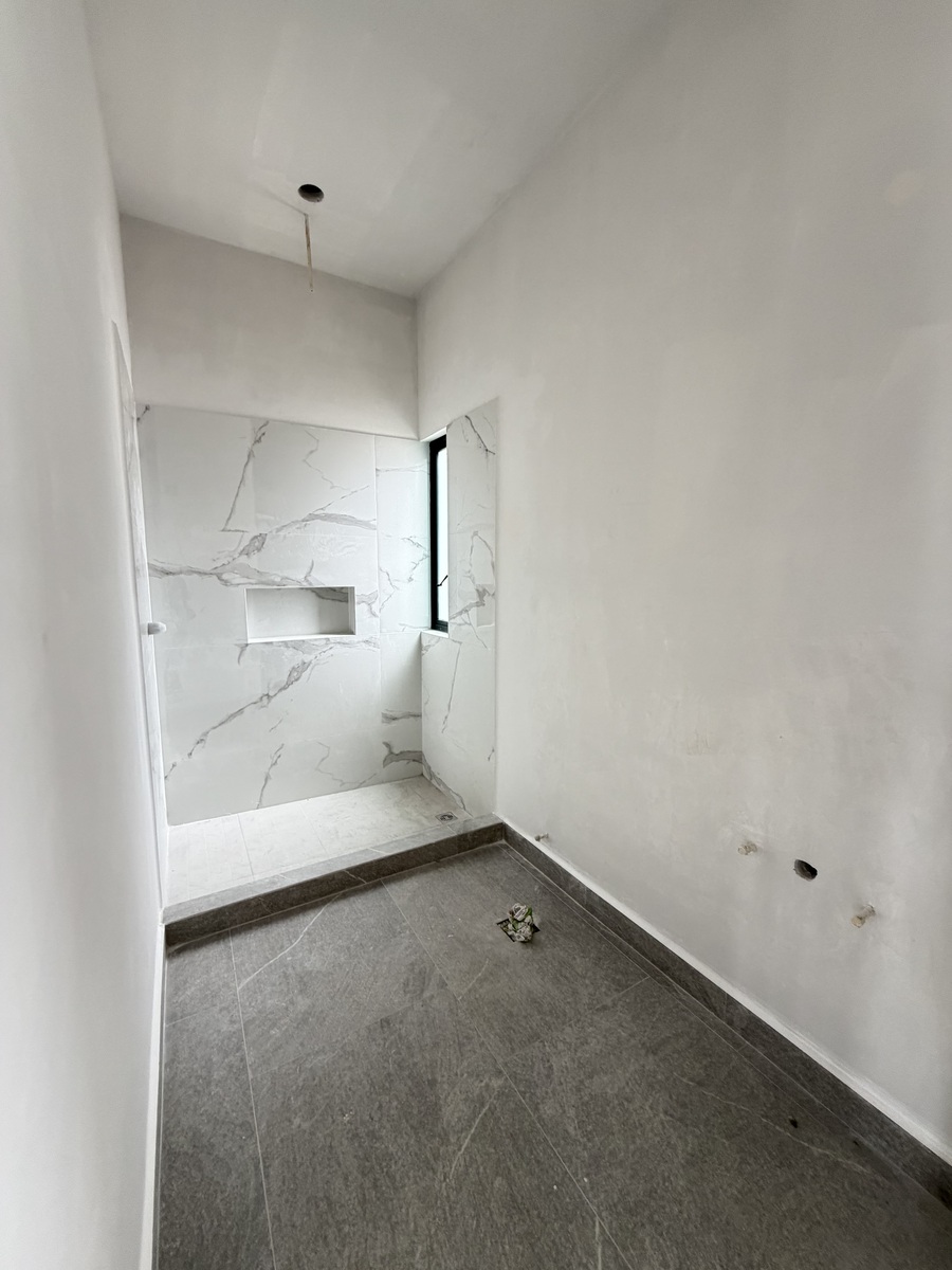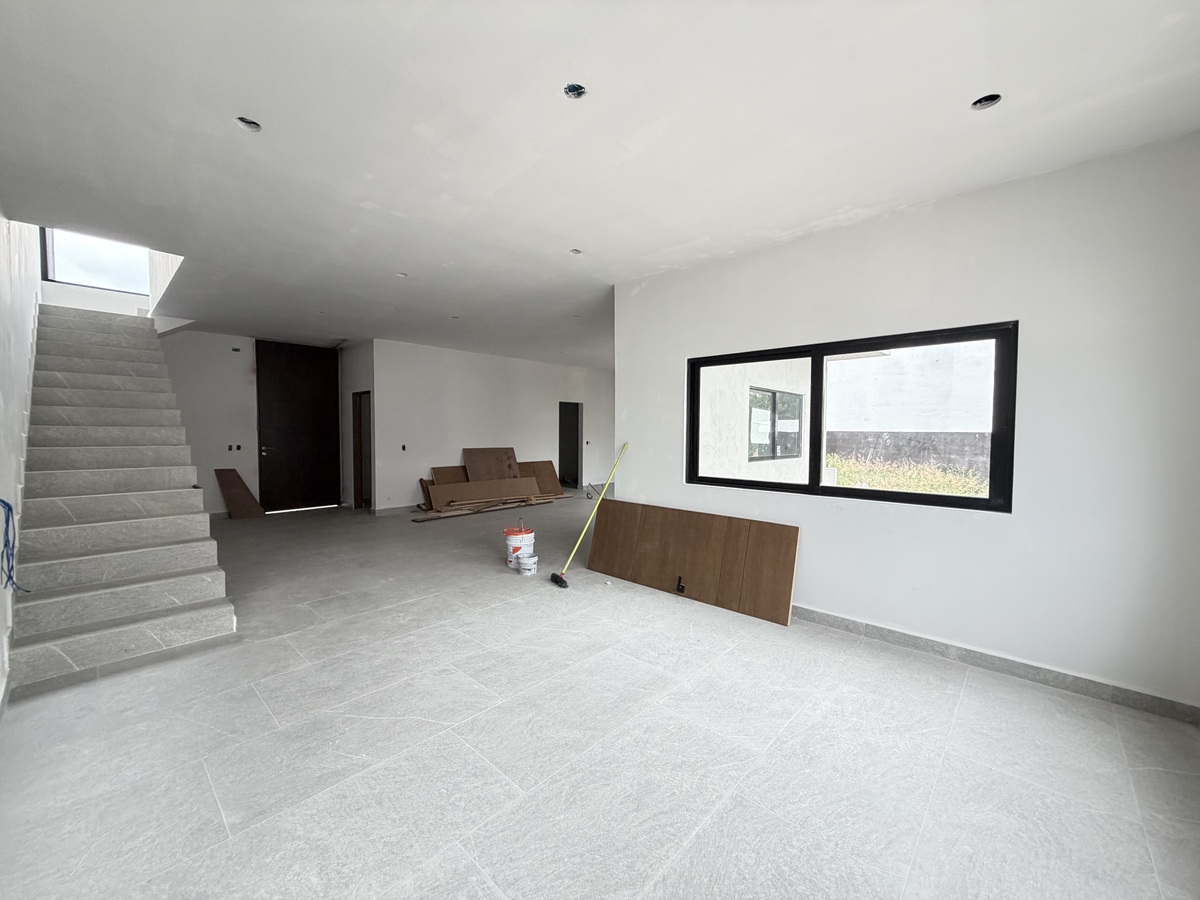 PB: cochera doble, recibidor, medio baño de vistas, sala, comedor y cocina con alacena independiente.