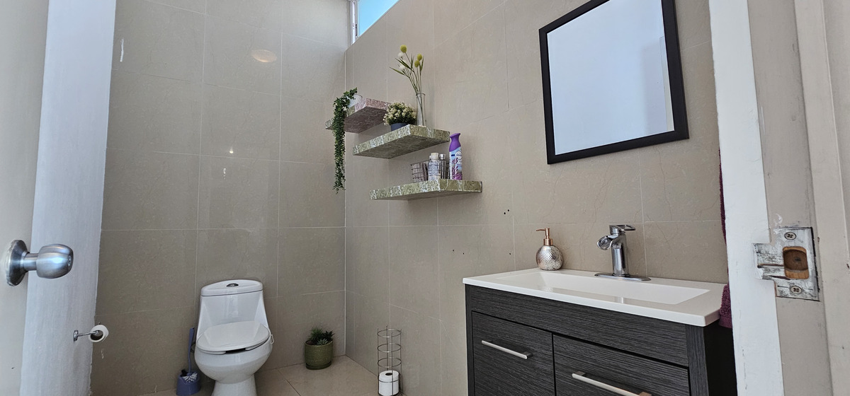 En el segundo nivel, la casa cuenta con tres amplias recámaras. La recámara principal tiene vestidor y baño completo, mientras que las dos habitaciones secundarias comparten otro baño completo.