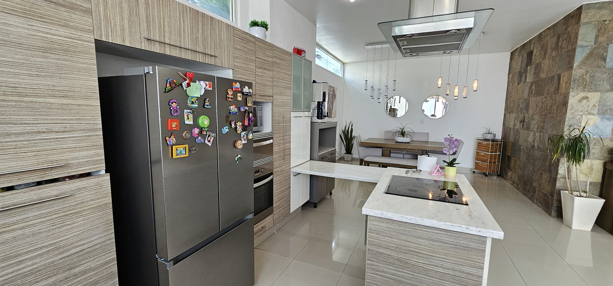 En la planta baja, encontrarás un recibidor, una sala y un comedor separados, una cocina equipada de lujo estilo "loft", un clóset y un medio baño de visitas. El estacionamiento tiene espacio para dos autos grandes.
